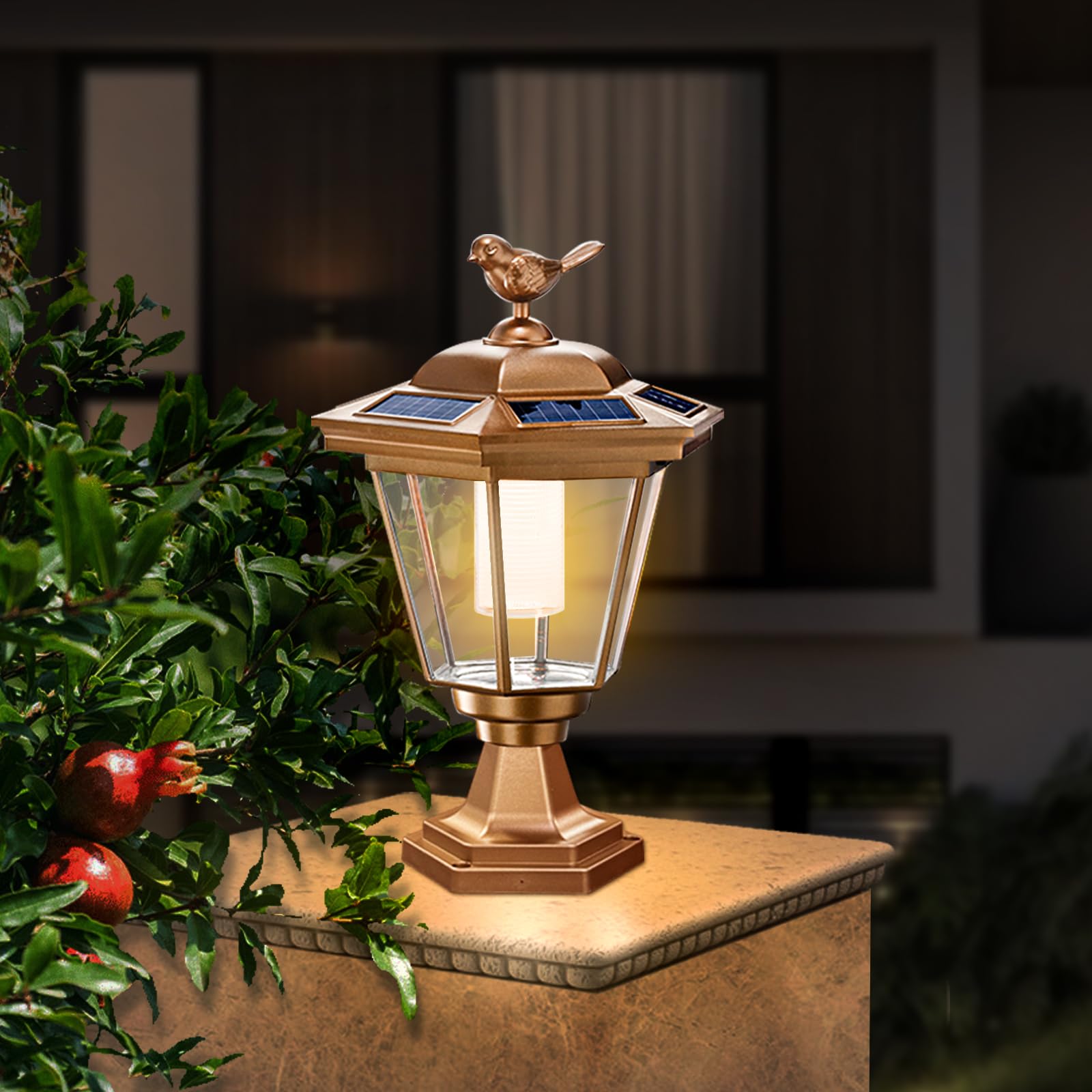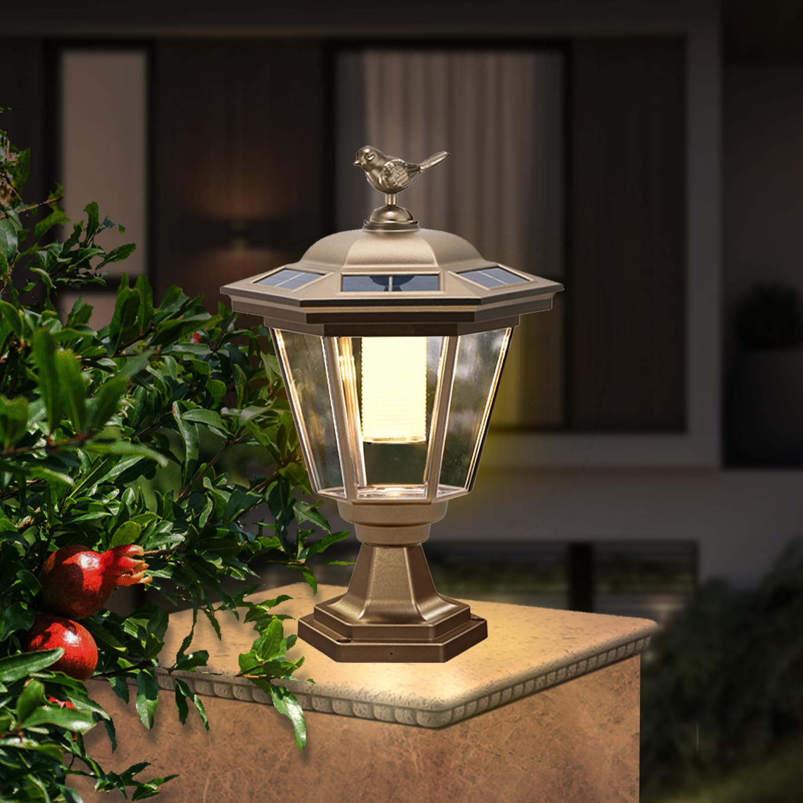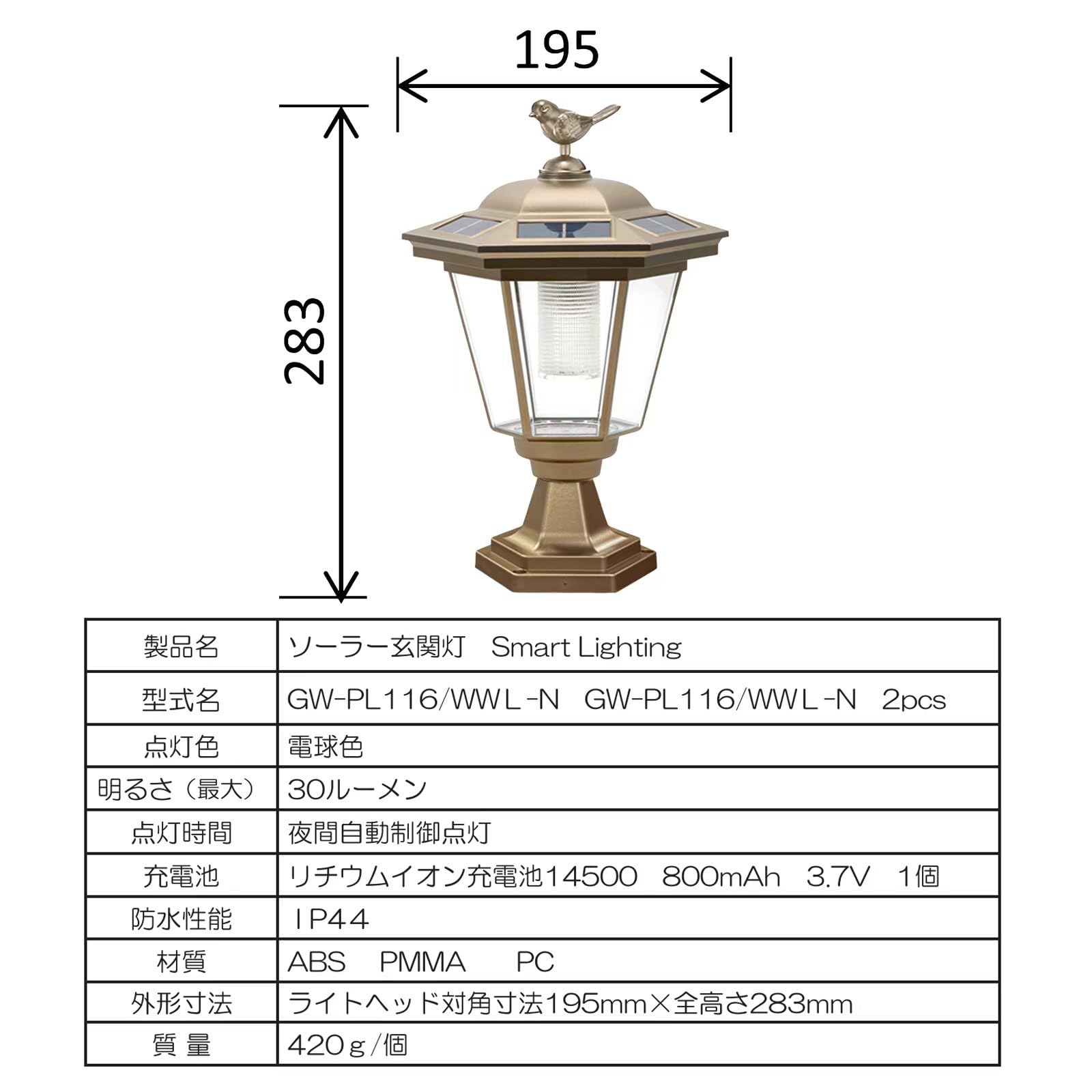 GWSOLAR【ソ−ラ−ランタン玄関灯 かわいい小鳥模様 Smart Lighting 1個いり】ソーラーライト 電球色 明るさ 30ルーメン,屋外門柱灯 玄関ライト 防水、夜間自動制御点灯/六面ソーラーパネルで全角度充電、ソーラー式 配線・電気工事不要、GWソーラー【 型番:GW-PL116/WWL-N 】