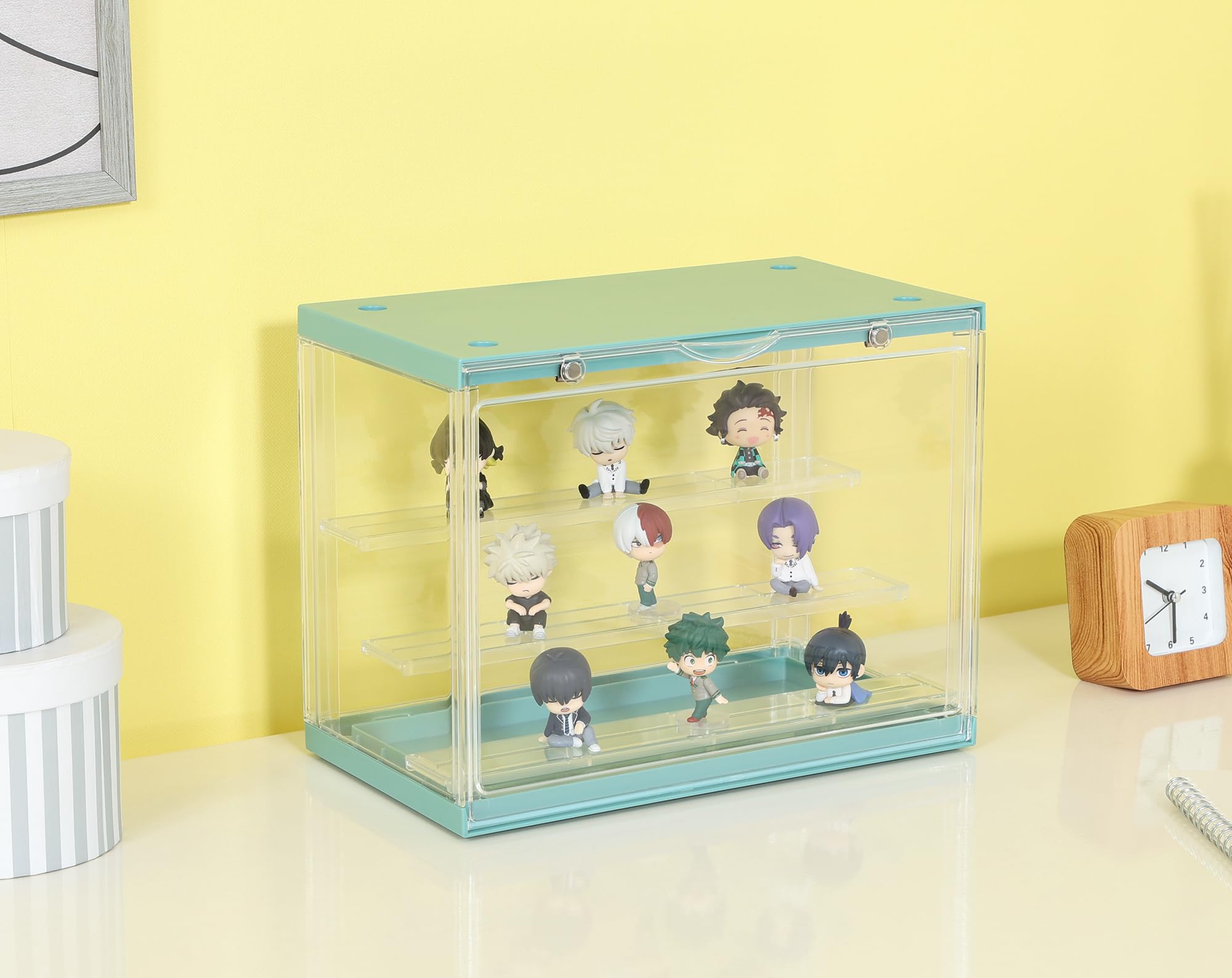 【数量限り】不二貿易 コレクションケース アクリルケース フィギュアケース 幅30×奥行17.6×高さ23.3cm 3段 ミントグリーン 29029