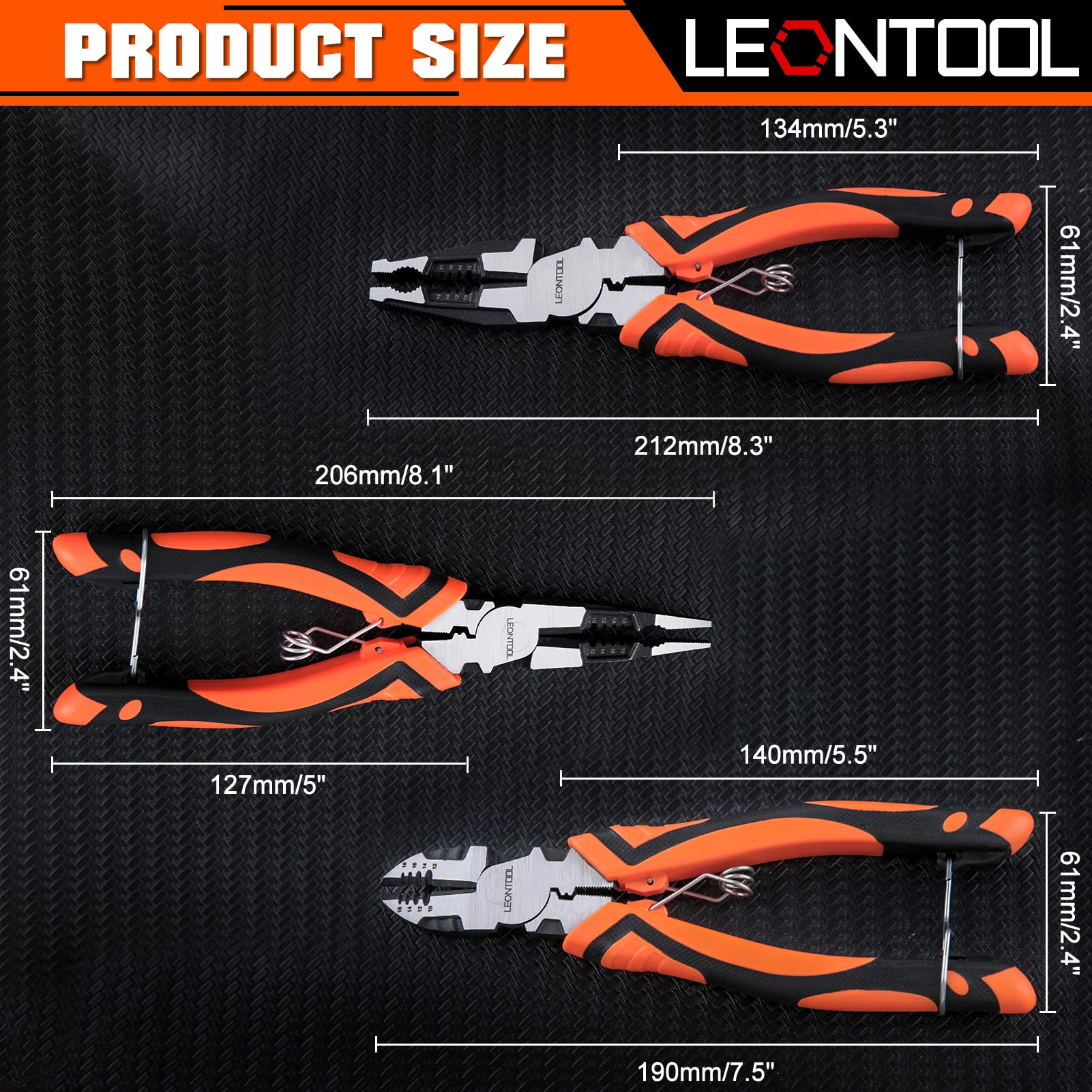 パッケージ内容:ラインスマンプライヤー1本、ロングノーズプライヤー1本、斜めカットプライヤー1本