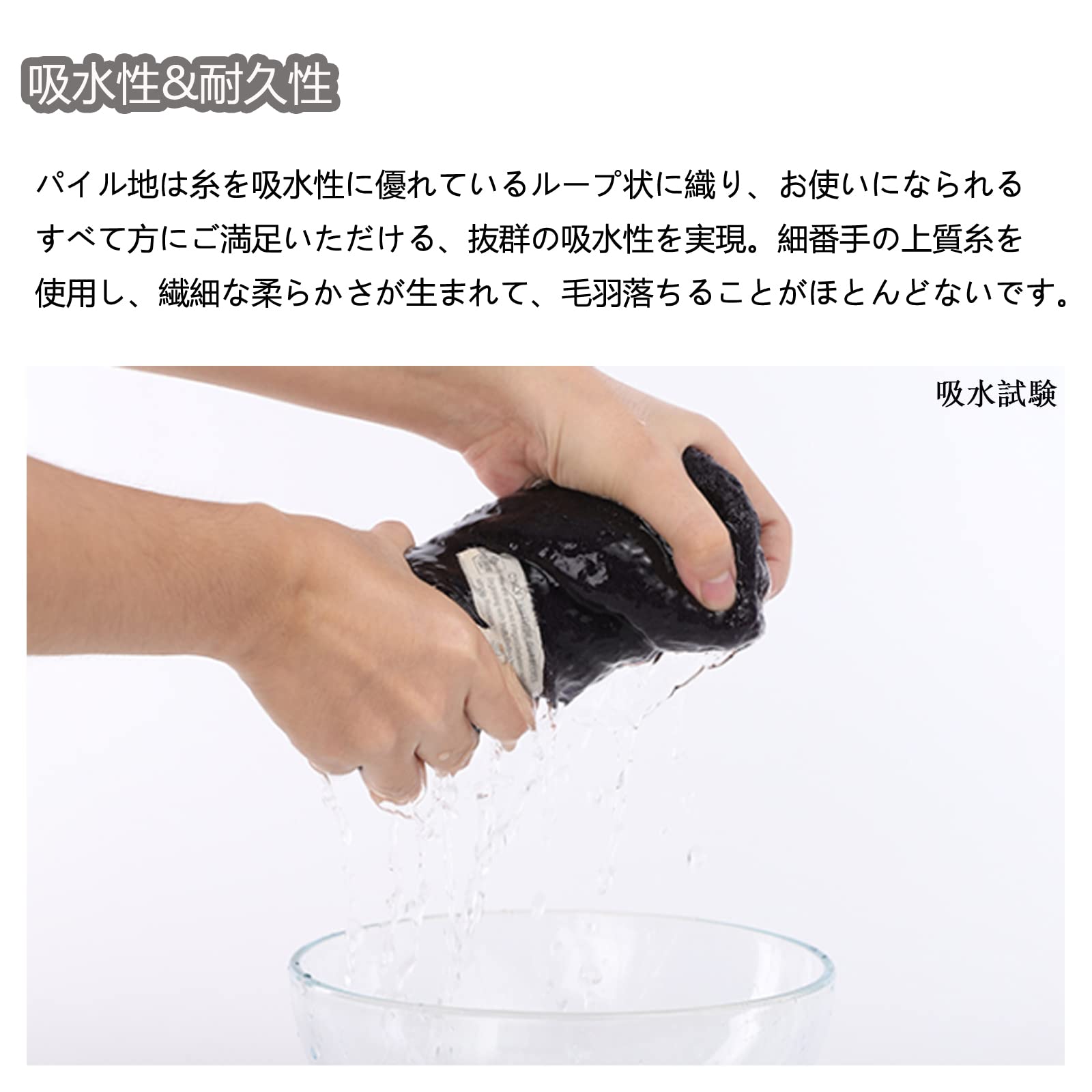 ?【抜群の吸水性・速乾性】パイル地は糸を吸水性に優れているループ状に織り、お使いになられるすべて方にご満足いただける、抜群の吸水性を実現。また、このタオルは乾燥しやすいメリットがあります。タオルの雑菌を抑え、健康を保つことができます。