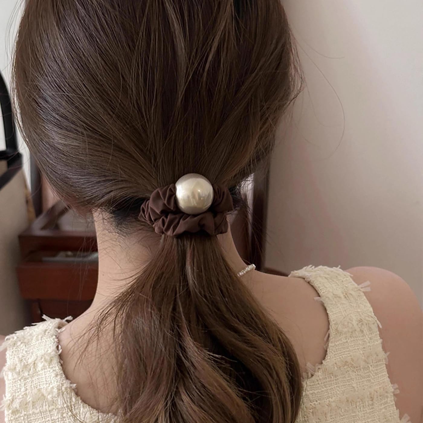 ?【デザインはシンプル】:シルク シュシュのデザインはシンプルで、美しくて可愛くて、違う服に合わせることができます!どんな季節にもぴったり!大きな真珠の装飾はとても可愛く、女の子や優雅な女性に愛されており、小さな女の子、大きな女の子、女性などに適しています。