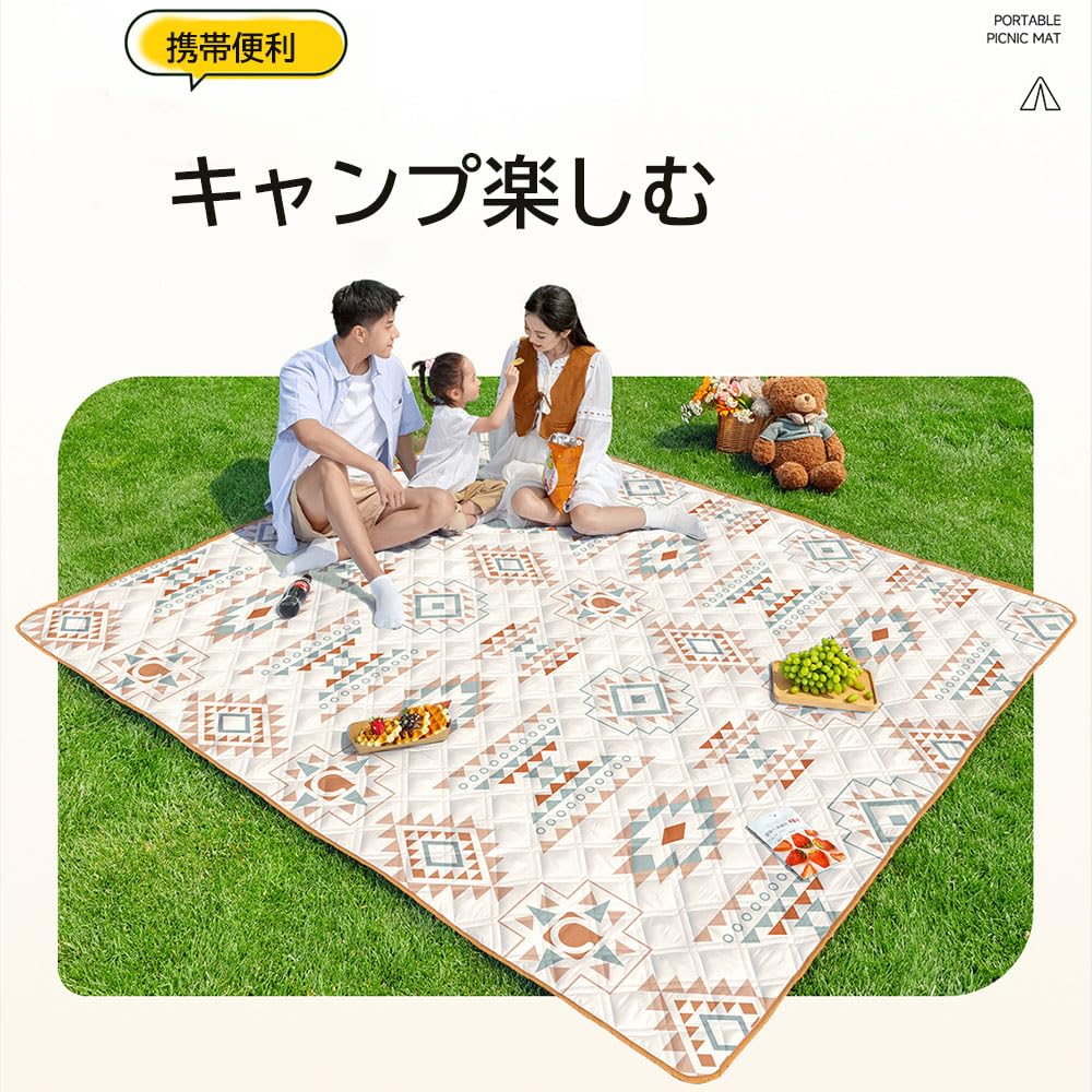 【防水機能】このレジャーシートは防水素材で作られており、地面からの湿気や水分をしっかりと遮断します。雨上がりの地面でも安心して使えるので、ピクニックやキャンプなどのアウトドア活動に最適です。