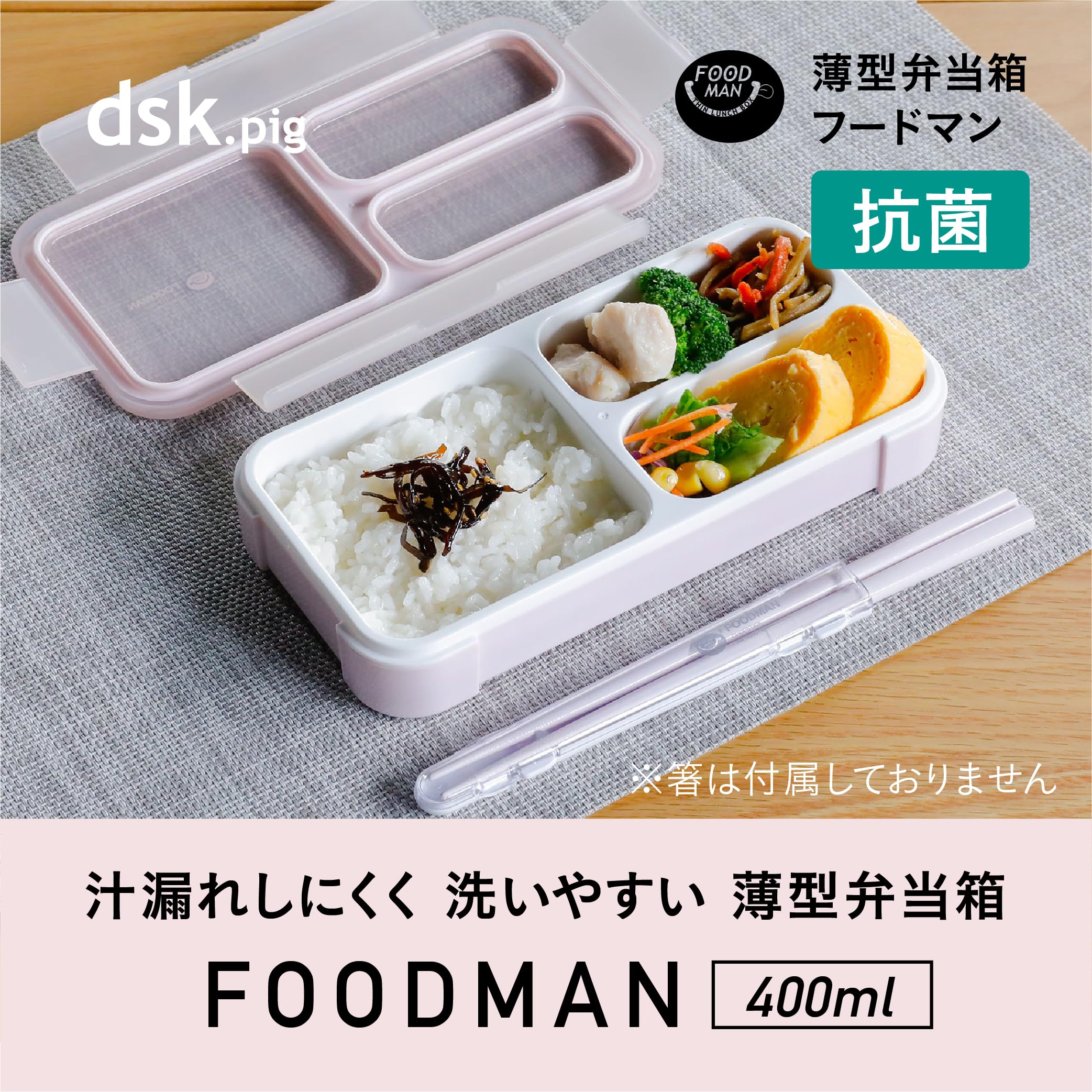 フードマン 弁当箱 立てて運べる 薄型弁当箱 400ml 抗菌仕様 ライトピンク 4点ロックでしっかり固定 Wシーリングで汁漏れしにくい DSK