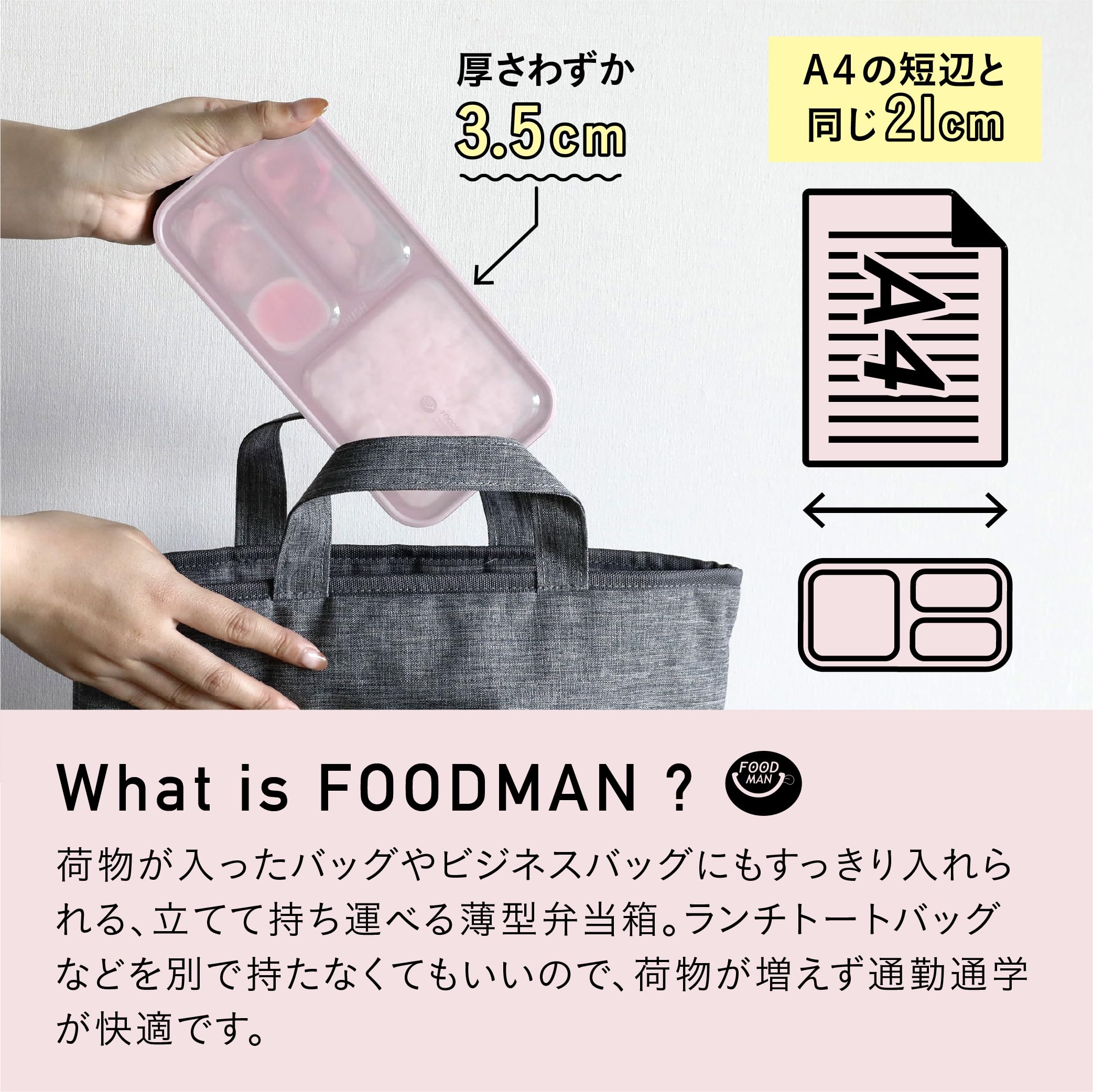 【ミニマム派には400ml】長財布と同じサイズのフードマン400ml。小さなバッグにもスッキリ収まります。ミニマムサイズなので女性や、ダイエットをしている方に最適です。また、おかずだけ持ってきて、その日の気分でコンビニおにぎりやスープなど、ちょい足ししたい方におすすめサイズ。