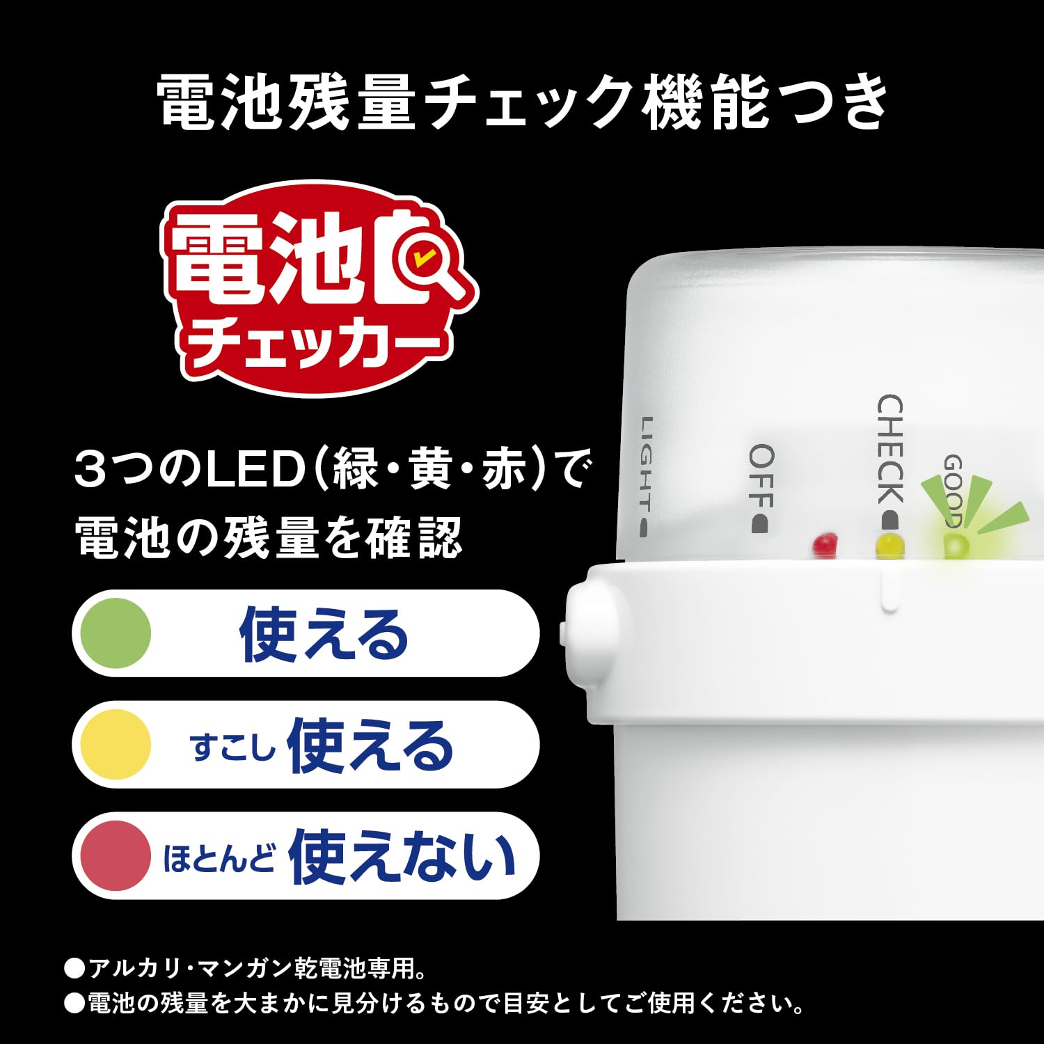 電池残量を3色のLEDで表示するので、電池チェッカーとしても使える。