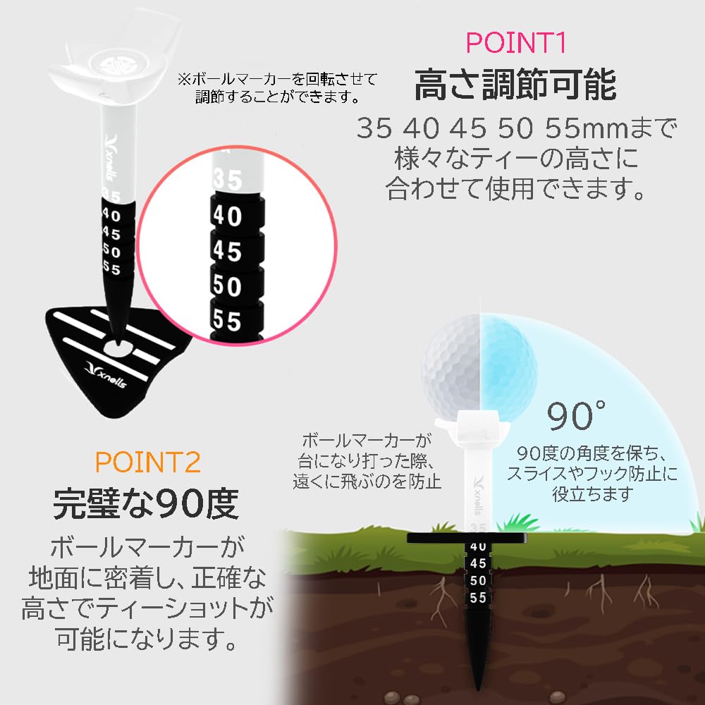 高さ調整機能付きゴルフティー, 35-55高さ調整,エイミング機能・耐久性,安定したボール配置でティーショット向上
