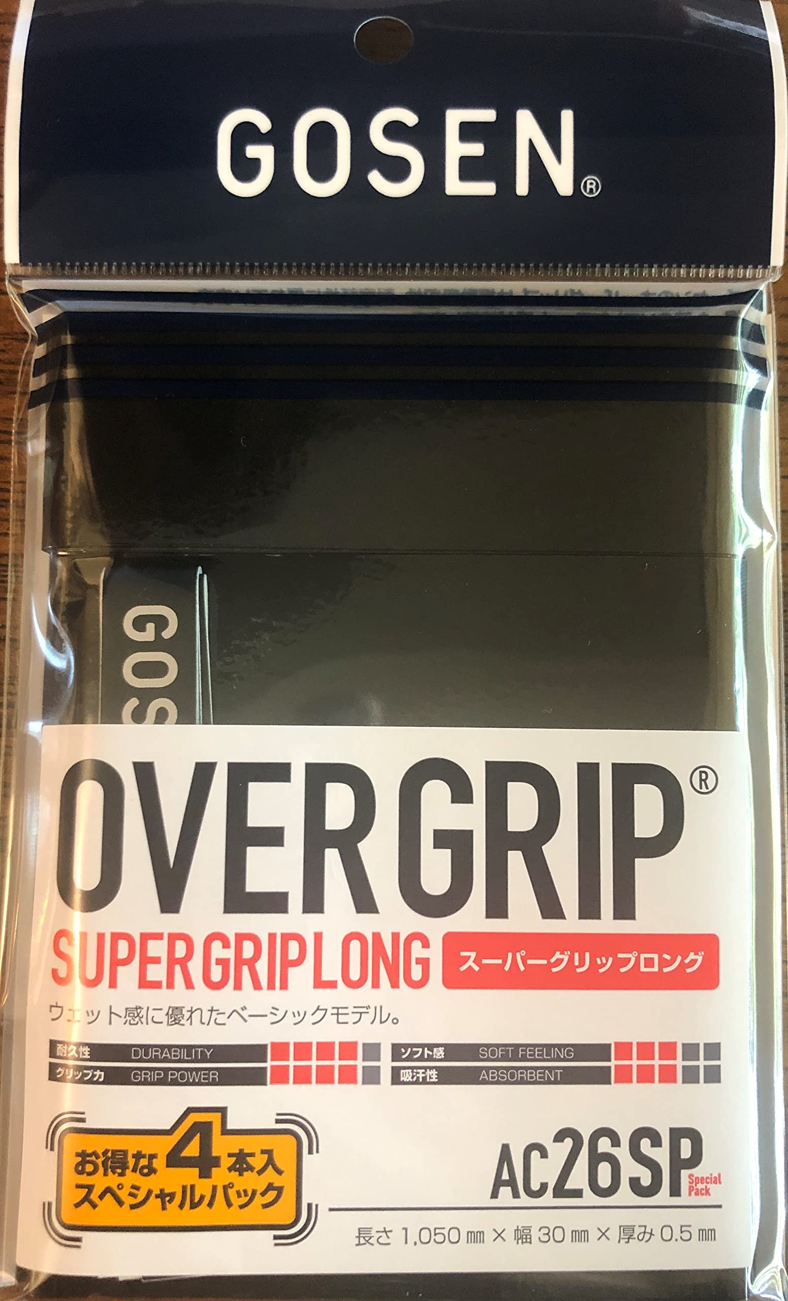 ゴーセン(GOSEN) テニス グリップテープ スーパーグリップロング 4本入り 【日本製】 AC26SP 日本製 1本おまけの4本入りお得用セット●左右兼用●LONG対応 テニスラケット用グリップテープ。1本おまけの4本入りお得用セット。MAID IN JAPANの高品質。