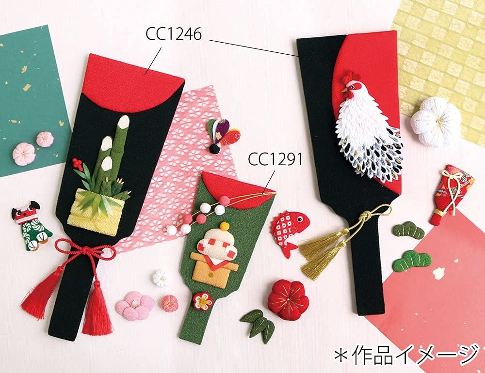 ちりめんパーツや和紙、和小物や造花などを貼り付けてオリジナルの羽子板作りにどうぞ♪