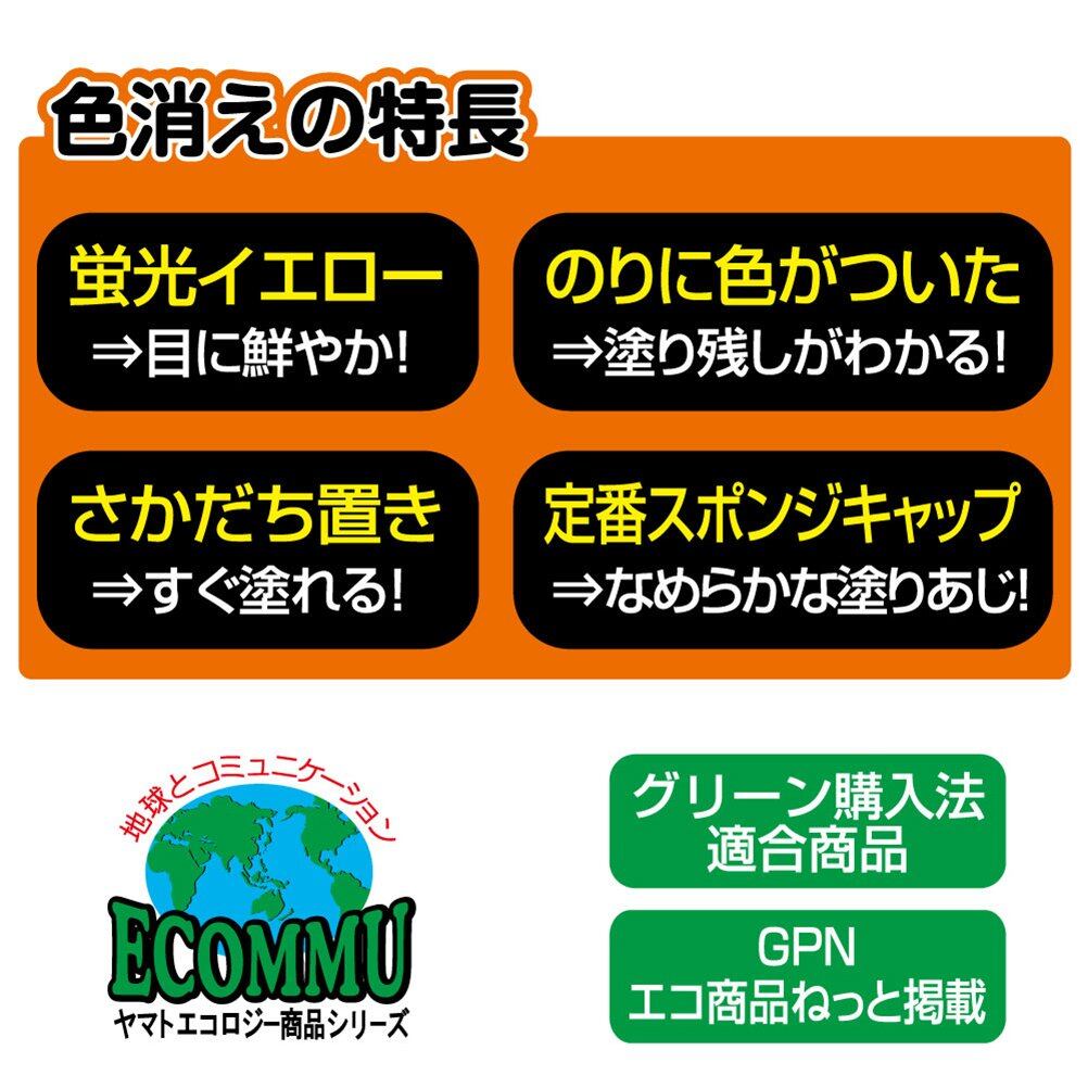 【特長1】鮮やかな蛍光イエローで、塗った所が良くわかる。