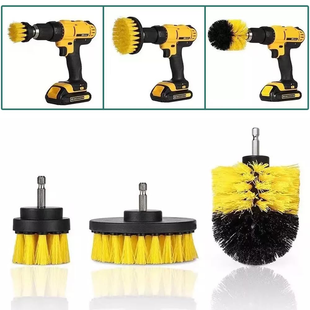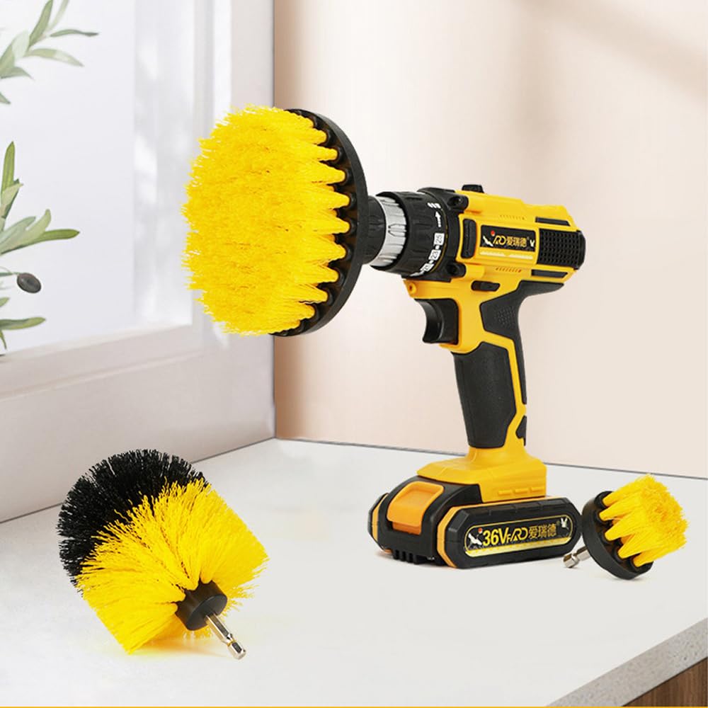 【新着特価】電動掃除用ブラシ 3枚セット 電動ドリルブラシ ドリル アタッチメントキット 六角軸電動ドリルに適応 浴室/キッチン/車輪/窓枠用 (イエロー)