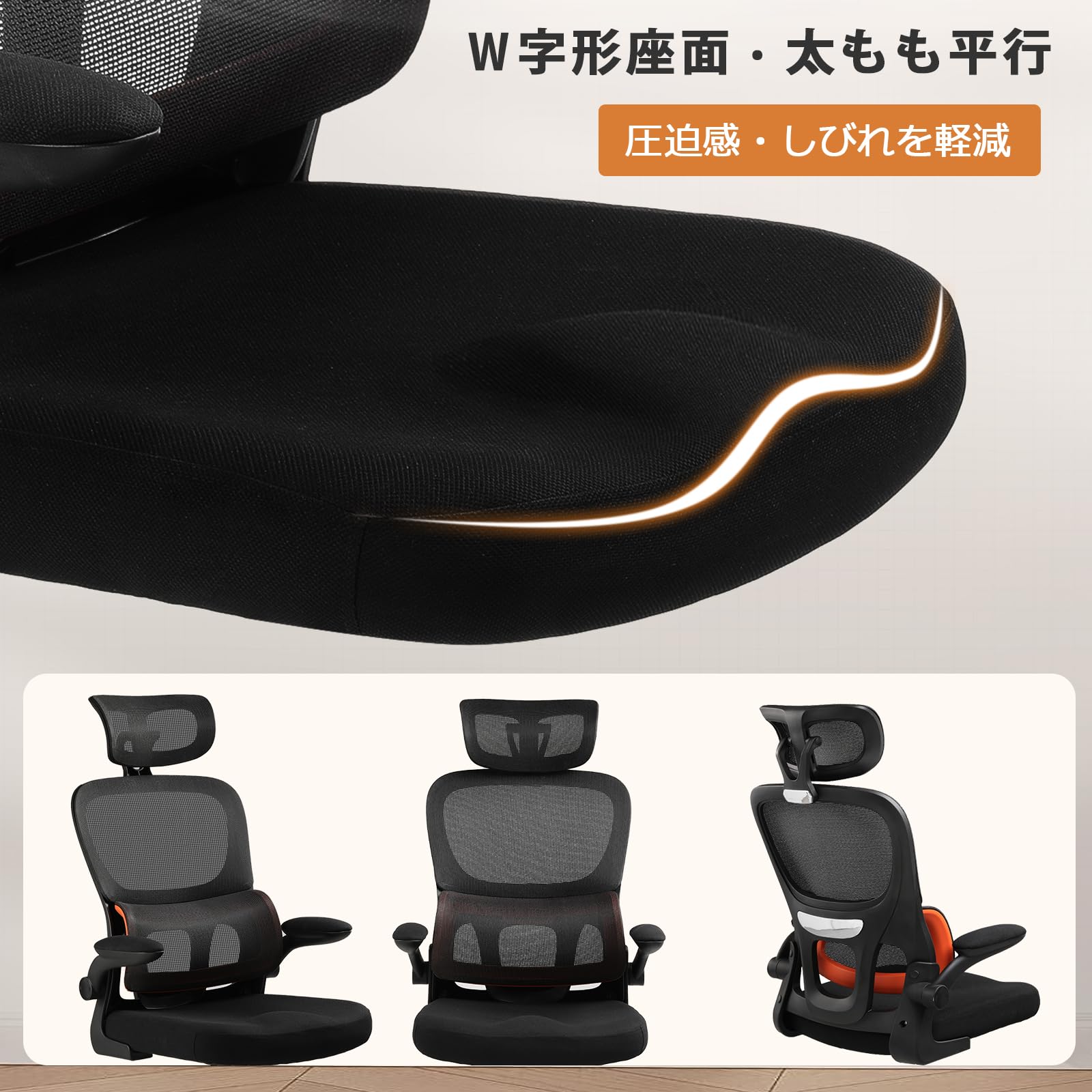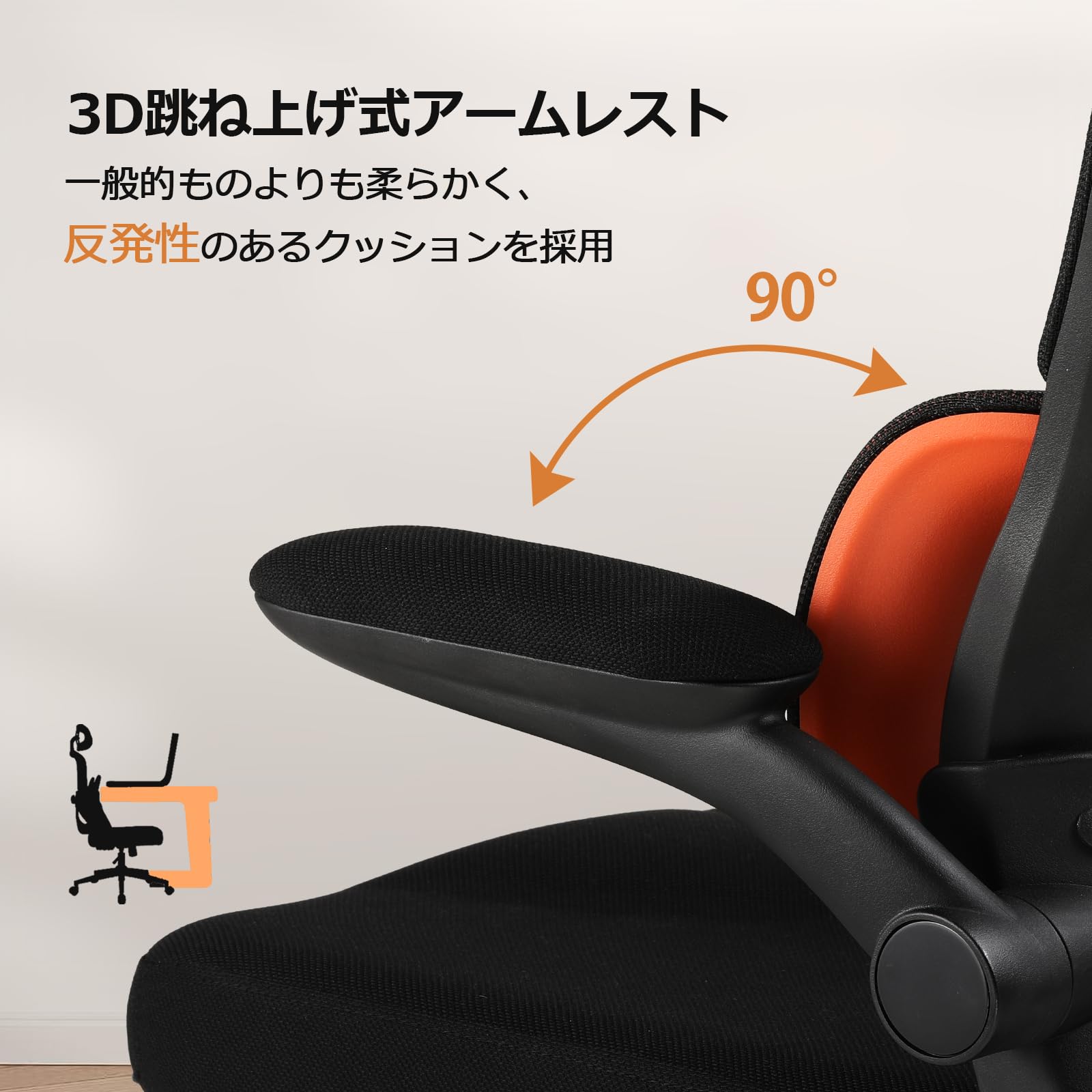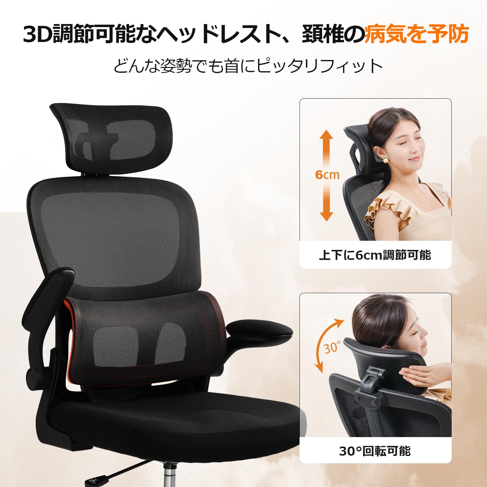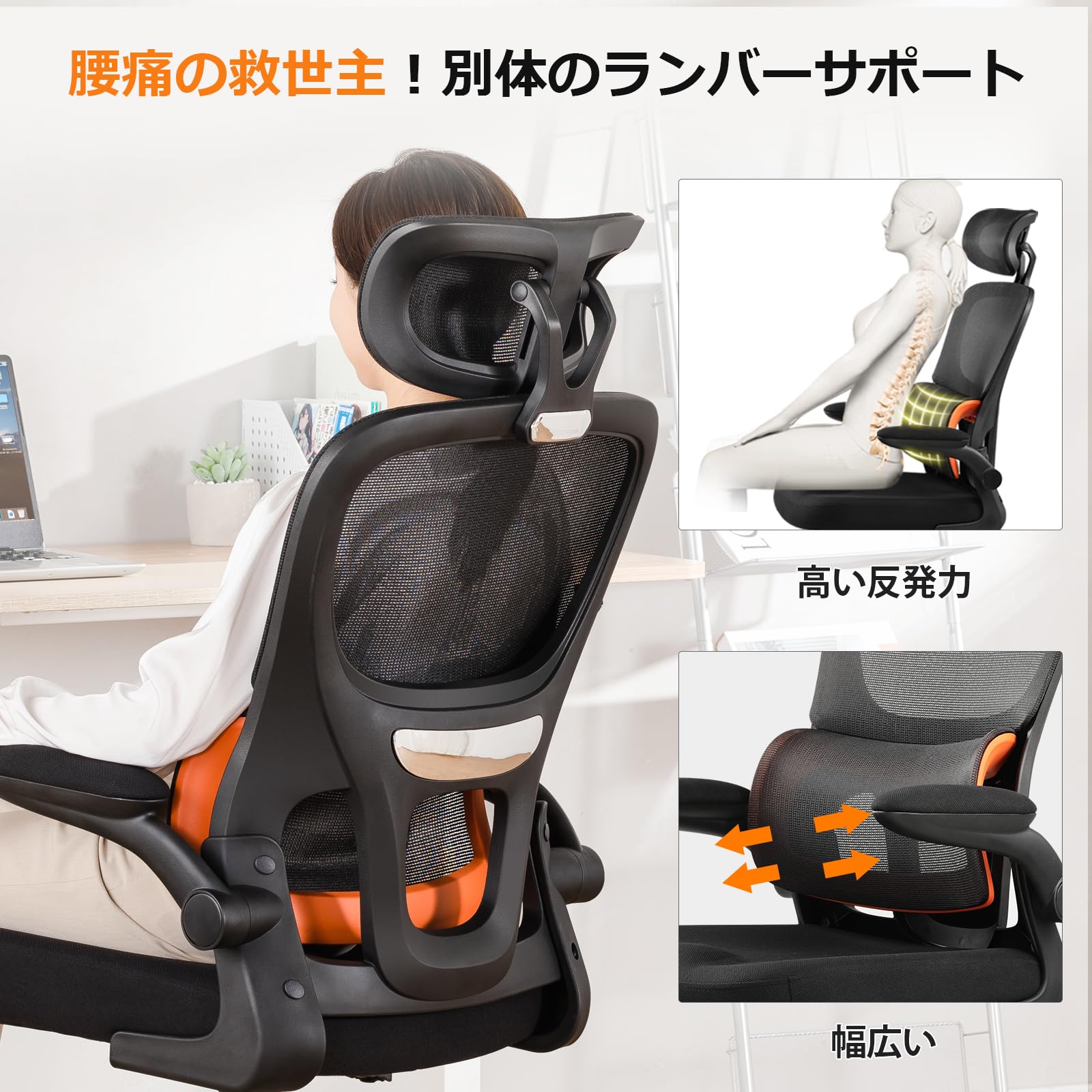 ComHoma デスクチェア オフィスチェア 椅子 テレワーク疲れない 小型ゲーミングチェア メッシュ 人間工学 ランバーサポート【反発力ある背もたれ 腰ラク】 跳ね上げ式アームレスト 在宅ワーク 在宅勤務 形状記憶ポリウレタンクッション材 3Dヘッドレスト ブラック CH124