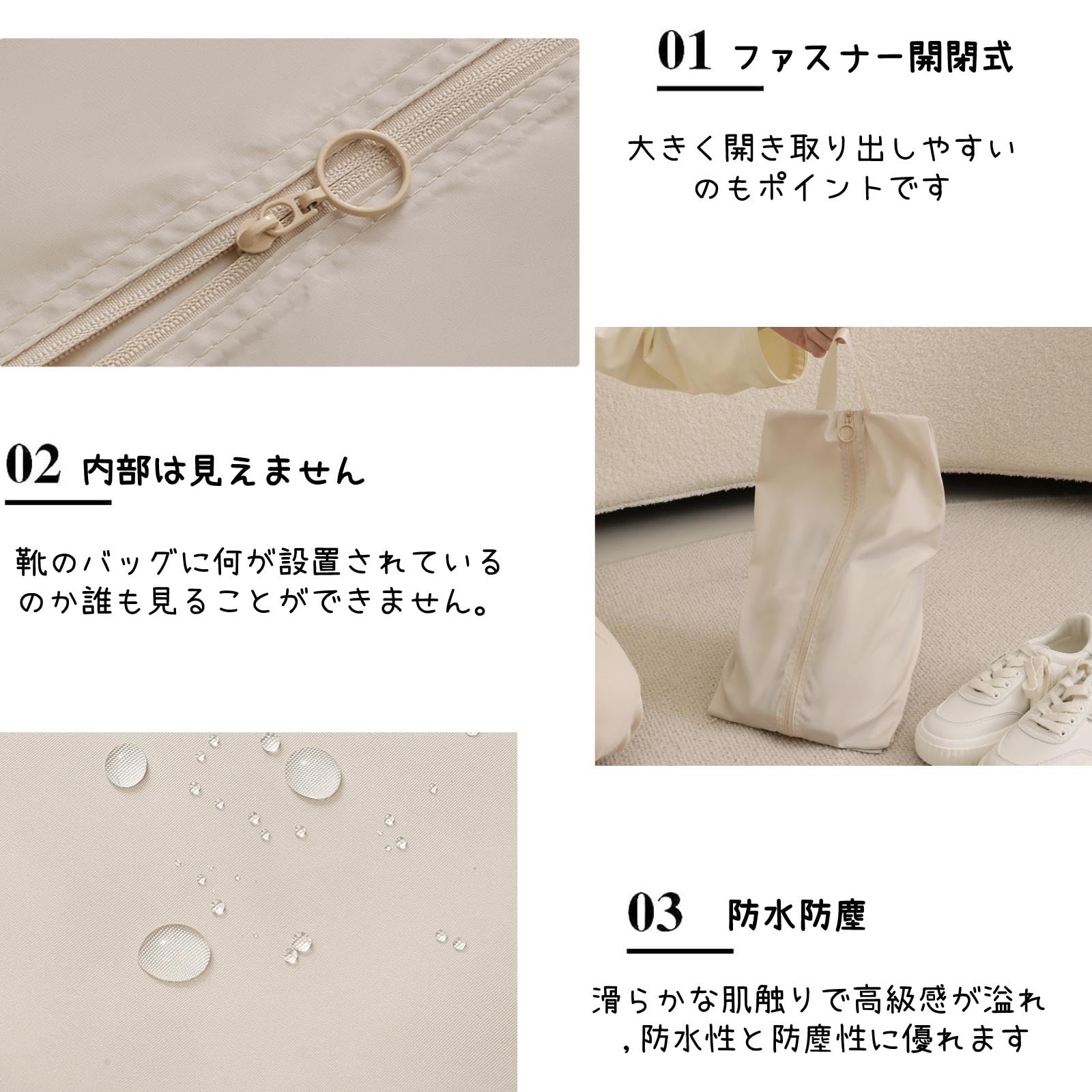 【防水防塵】 シューズケースは全体高品質メモリー素材で作られて、滑らかな肌触りで高級感が溢れ ,防水性と防塵性に優れ、耐久性があり、洗いやすい,出張や旅行、スポーツ時に使用する場合、靴をしっかりと保護しますメモリー素材