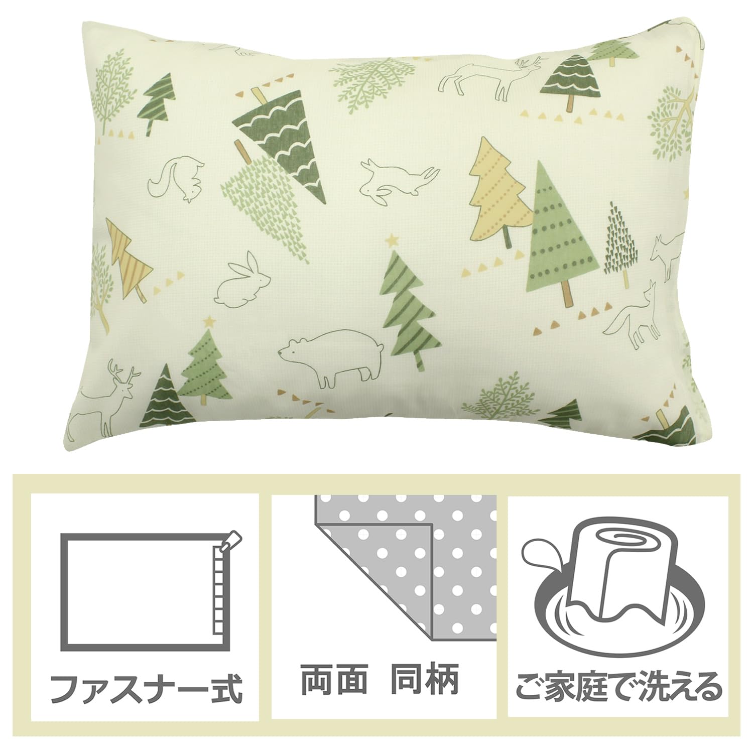【在庫処分】メリーナイト 枕カバー 「北欧ツリー」 グリーン 約43×63cm ファスナー式 まくらが入れやすい 綿混素材 速乾 シワになりにくい 洗える 衛生 清潔 オールシーズン MN16152-53