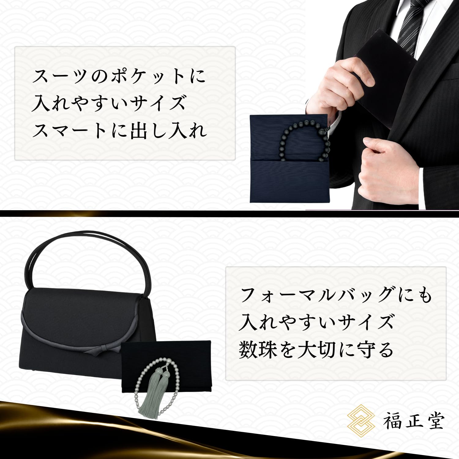 ?【標準サイズ】男性用、女性用の平均サイズの数珠(略式数珠)が収納可能です。
