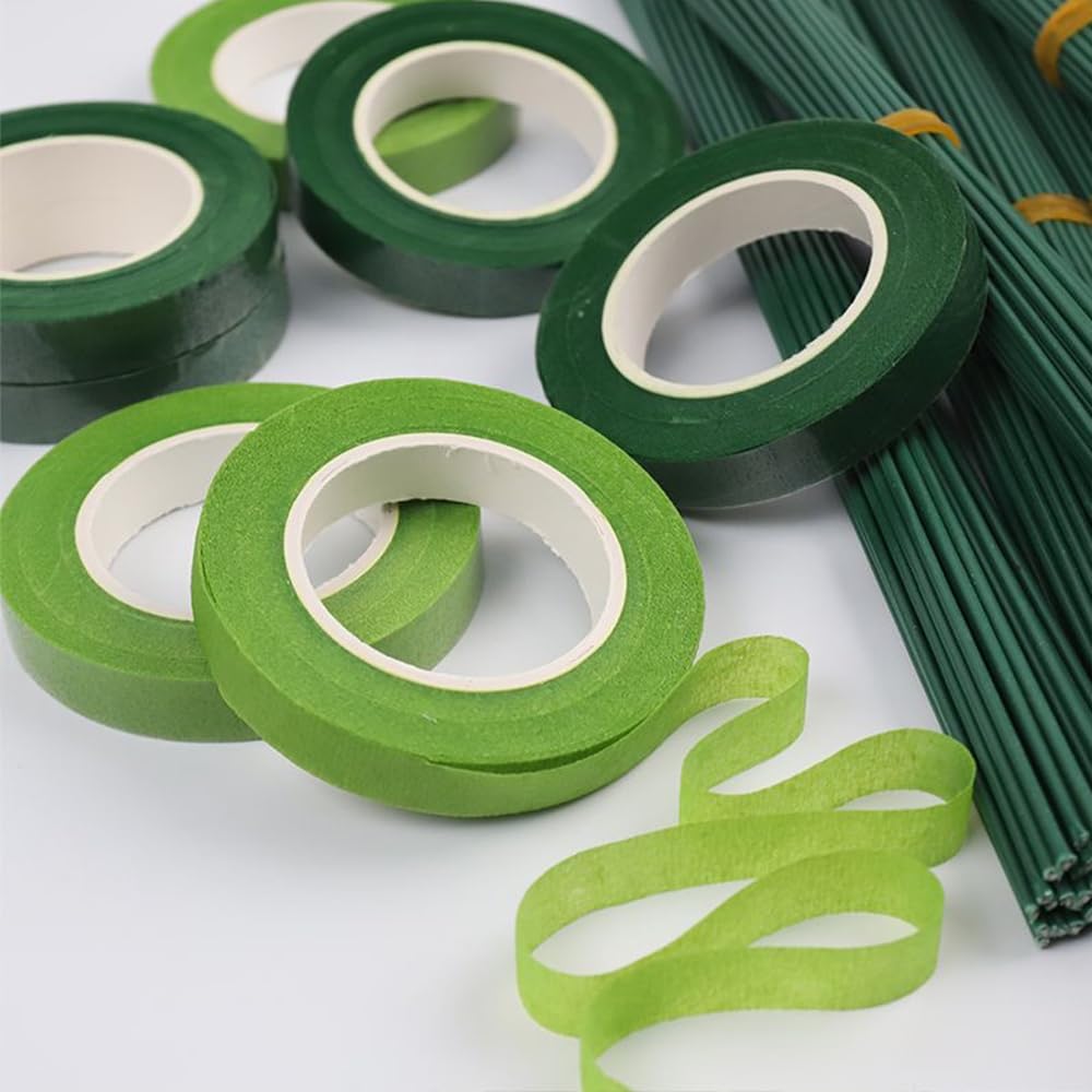 1. プロ用フラワーアレンジメント6点セット 浅緑2巻+深緑4巻のフローラルテープ(各30m)と、30cm茎用ワイヤー100本のセット。6束のフローラルテープと100本のフラワーロッドは完璧な組み合わせで、フローラルテープには事欠かない。ブーケやコサージュ作りに必要な基本ツールが一式揃う充実の内容量。 2. 和風アレンジにも最適な自然素材感 植物由来の粘着剤を使用したテープは、和室の畳や仏壇周りを傷つけず、茶花や仏花の仕上げにぴったり。 3. しっかり固定できる強化ワイヤー 太めの強化設計で折れにくく、重い花材でもしっかり保持。自由に曲げられる柔軟性と強度を両立。 4. 剥がれない強粘着テープ 特殊処方の粘着剤で、湿度の高い日でもしっかり接着。花材の固定が簡単で、長時間持続します。 5. 多様なシーンで活躍 仏花の補強からウェディングブーケの土台作りまで、プロから趣味まで幅広く使える汎用性。