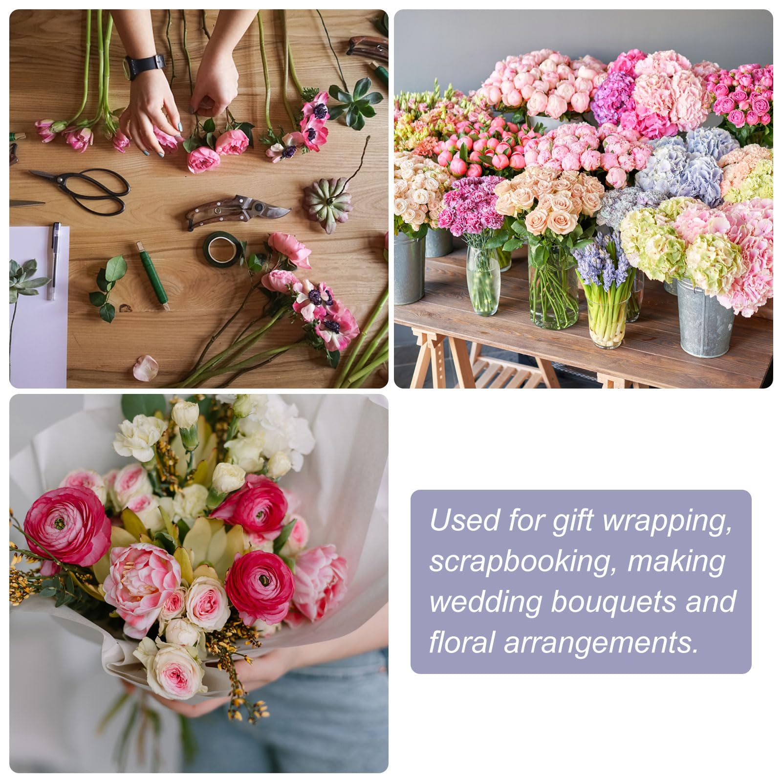 用途 - フローリストテープは花の制作、クリスマスギフトの包装、手芸制作などに使用されます。花のアレンジメント、ウェディング、LEDライトの制作、紙の花、シルクスクリーンの花、水晶の花、DIYスク ラップブッキング、フォームガーランドなどに最適です。