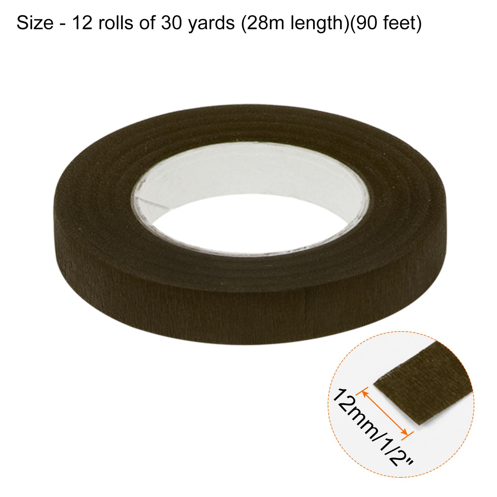 uxcell 12ロールのフローラルテープ 1/2幅 30ヤード 花のアレンジメント ウェディングブーケの包装 クラフト フローリストテープ ダーク茶色