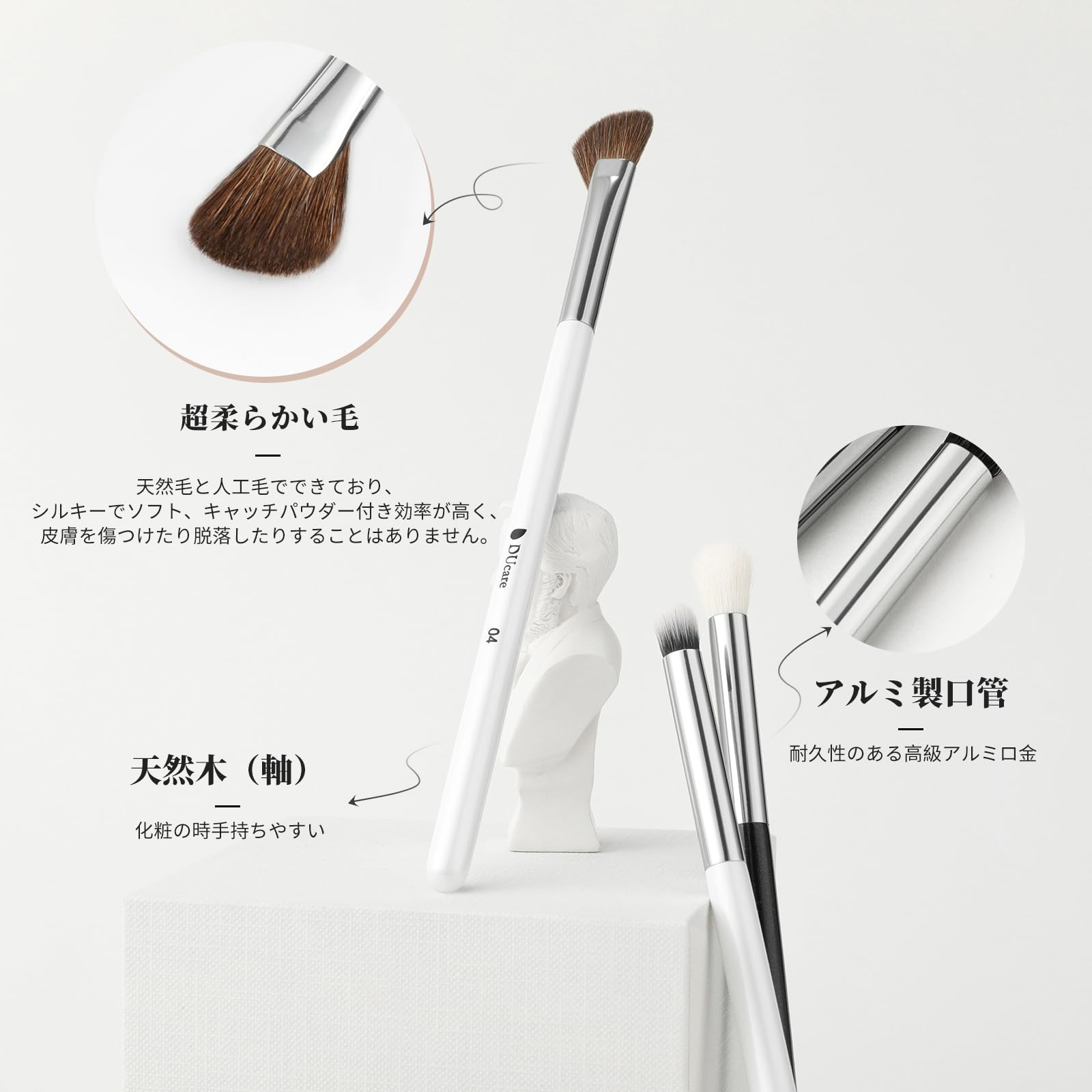 【品質がよい】メイクブラシは手作業で製造されており、ブラシは柔らかくまた滑らかで、弾力性に富んでいます。高級感ありアルミロ金を使用し、耐久性がよく摩耗に強い。ハンドル部分は高品質の材木を採用し、持ちやすい。
