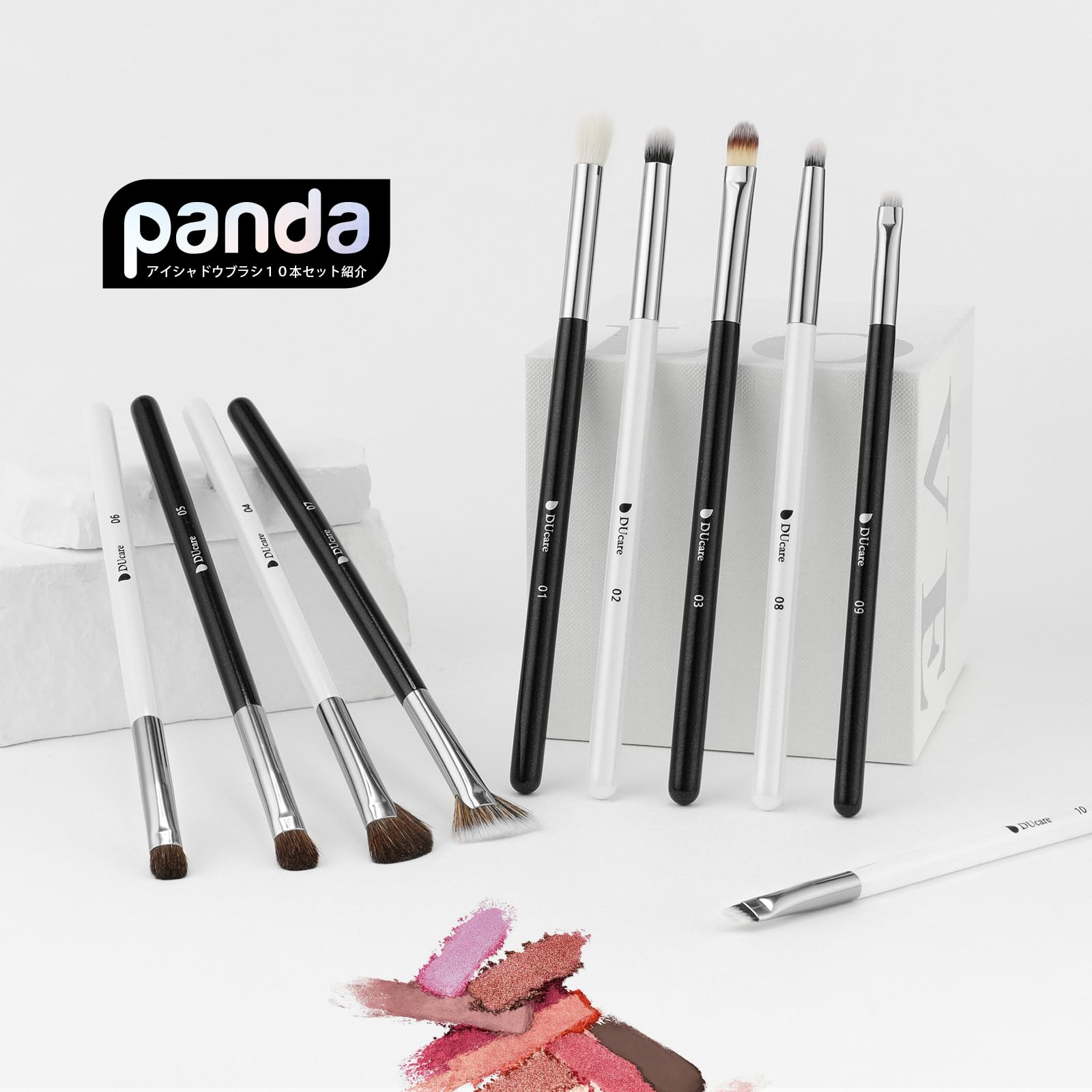 【白と黒の配色】パンダのように可愛らしい白と黒の配色を採用し、異なるメイクブラシをより分かりやすく区別し、日常生活での使用をより便利にします。