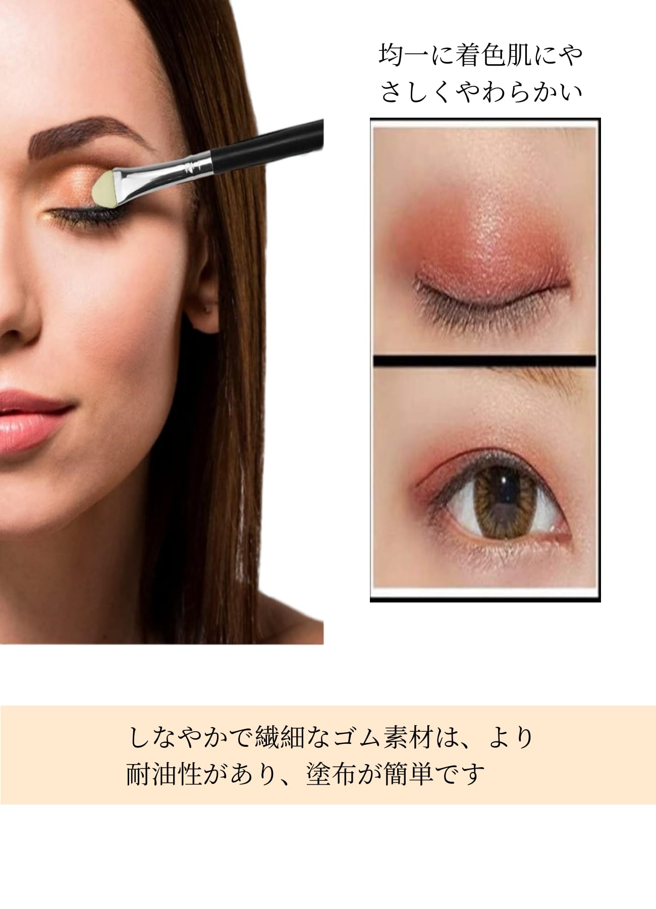 【マストメイクツール】両面ブラシ構造。異なる色のアイシャドウに使い分けできます。やわらかいアイシャドウブラシは、密着性が高く、パウダーにくっつきやすいです。
