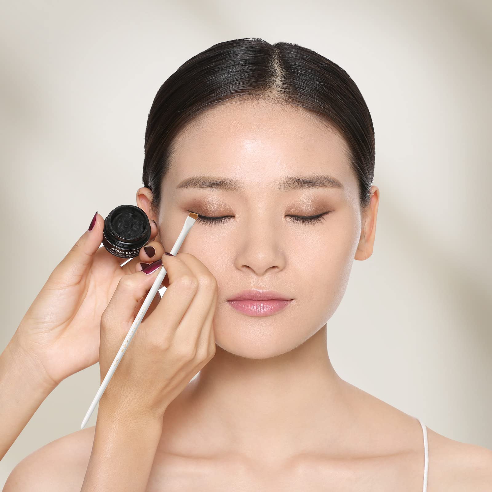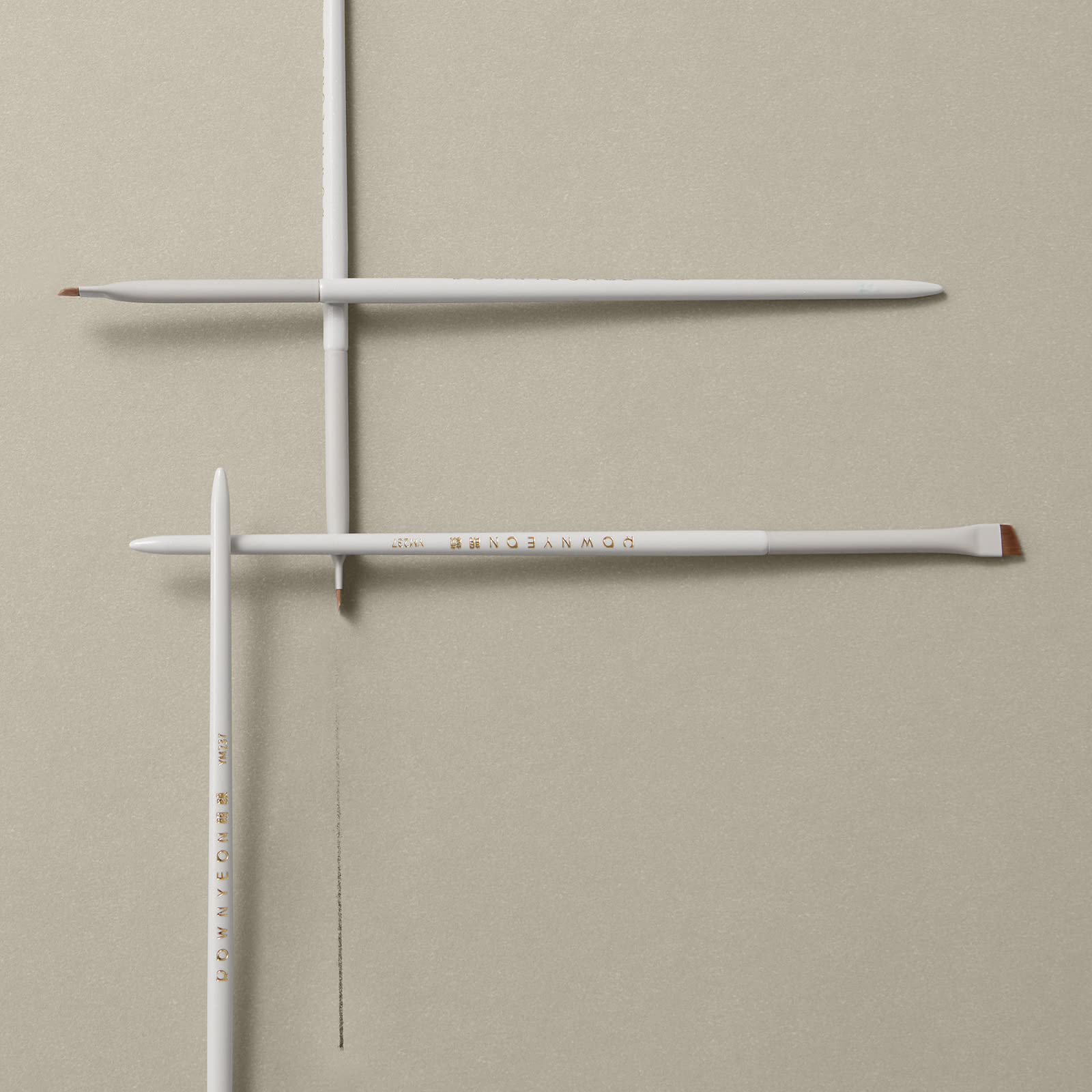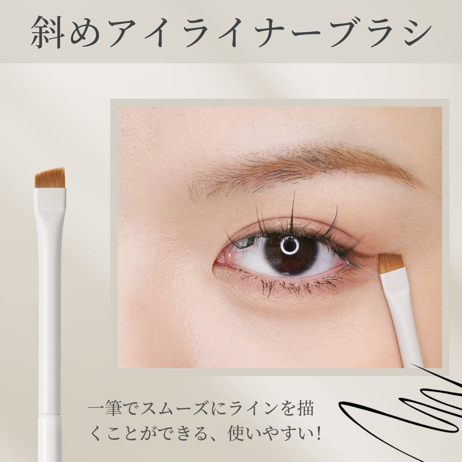 【斜めアイライナーブラシ】ROWNYEONは化粧筆の専門ブランドで、様々な種類のメイクブラシを製造しております。このアイライナーブラシは斜めカット設計なので、一筆でスムーズにラインを描きます!とても便利です。