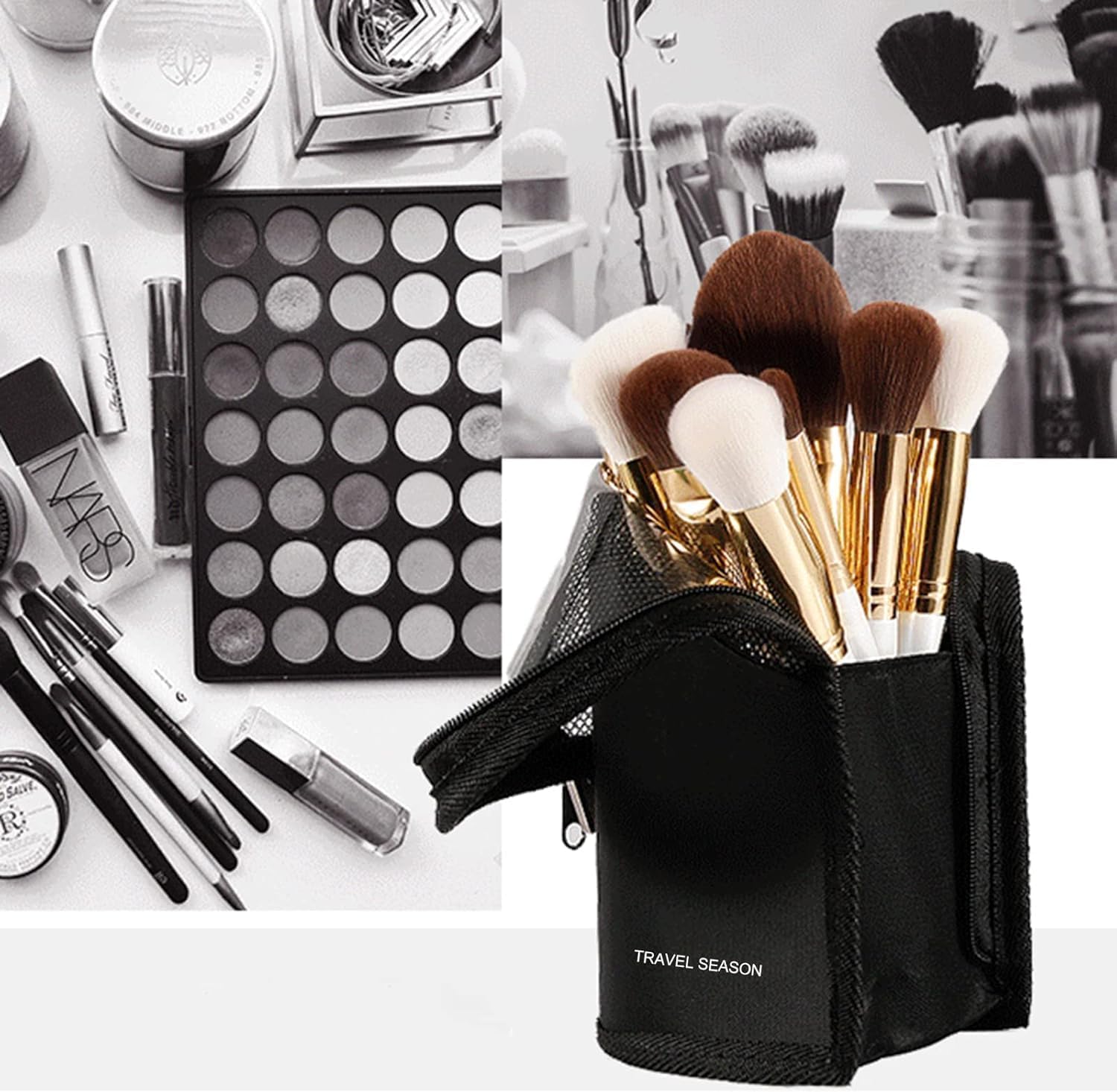ポータブル&軽量:メイクブラシバッグは、軽量、コンパクトで広々としています。 ハンドバッグや旅行バッグに入れて持ち運ぶことができます。 6つの伸縮性のあるストラップスロットがあり、固定効果もあります。 混乱を軽減し、スペースを節約