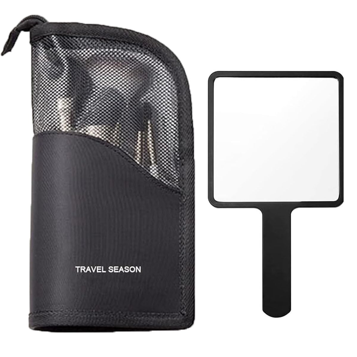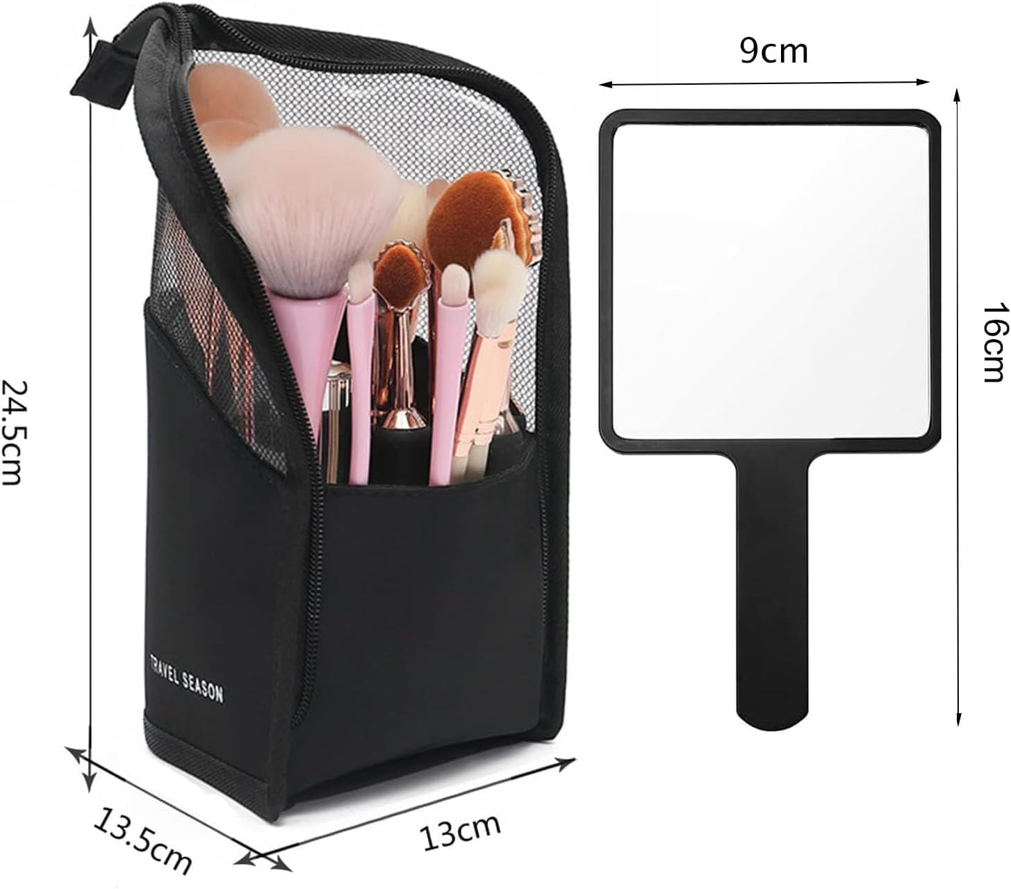 メイクブラシケース ブラシスタンド 化粧筆 ブラシポーチ ペンケース 大容量 化粧ブラシホルダー ペン立てペンケース 小物入れ 収納ボックス 出張・旅行 収納 メイクアップミラーを無料プレゼント (黒)