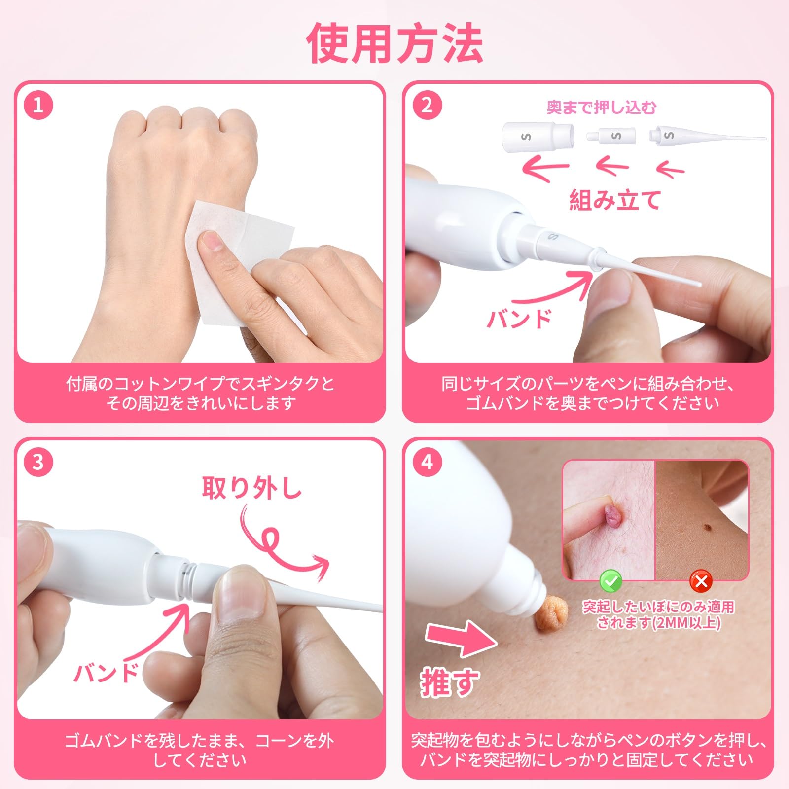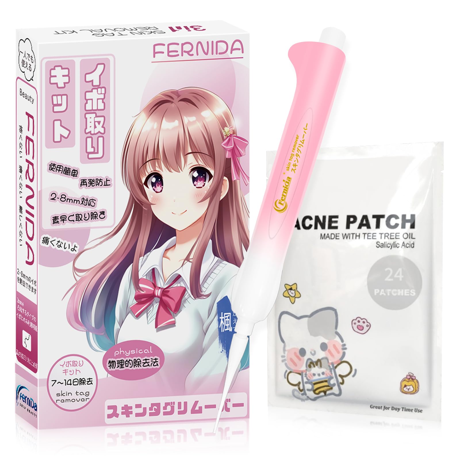 FERNIDA イボ取り スキンタグリムーバーキット 自宅処理 簡単使用 顔 首 1週間解決 3サイズ 88枚輪ゴム エコー素材採用 直径2-9mm対応 全身 イボがころり落ちる 日本語取扱付き