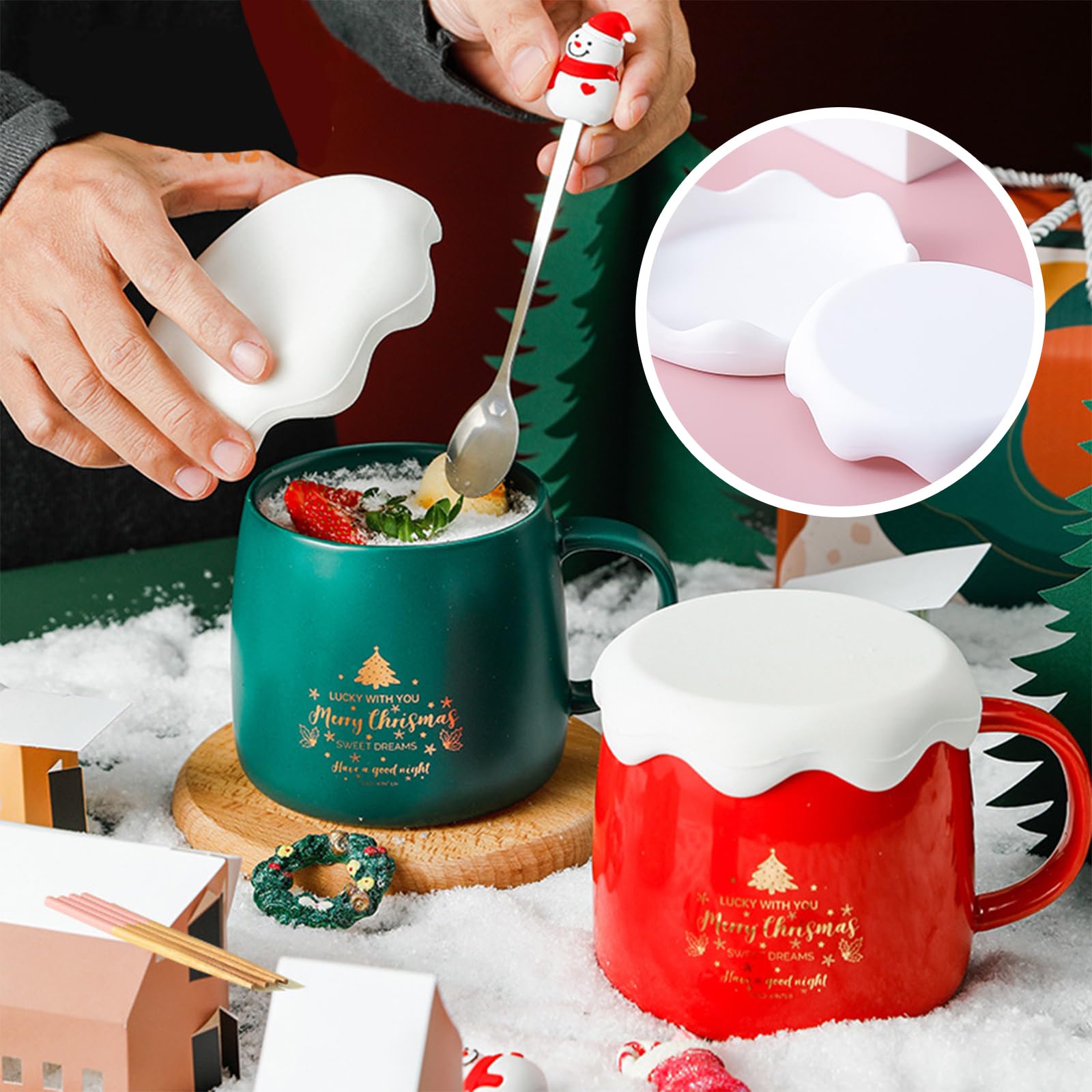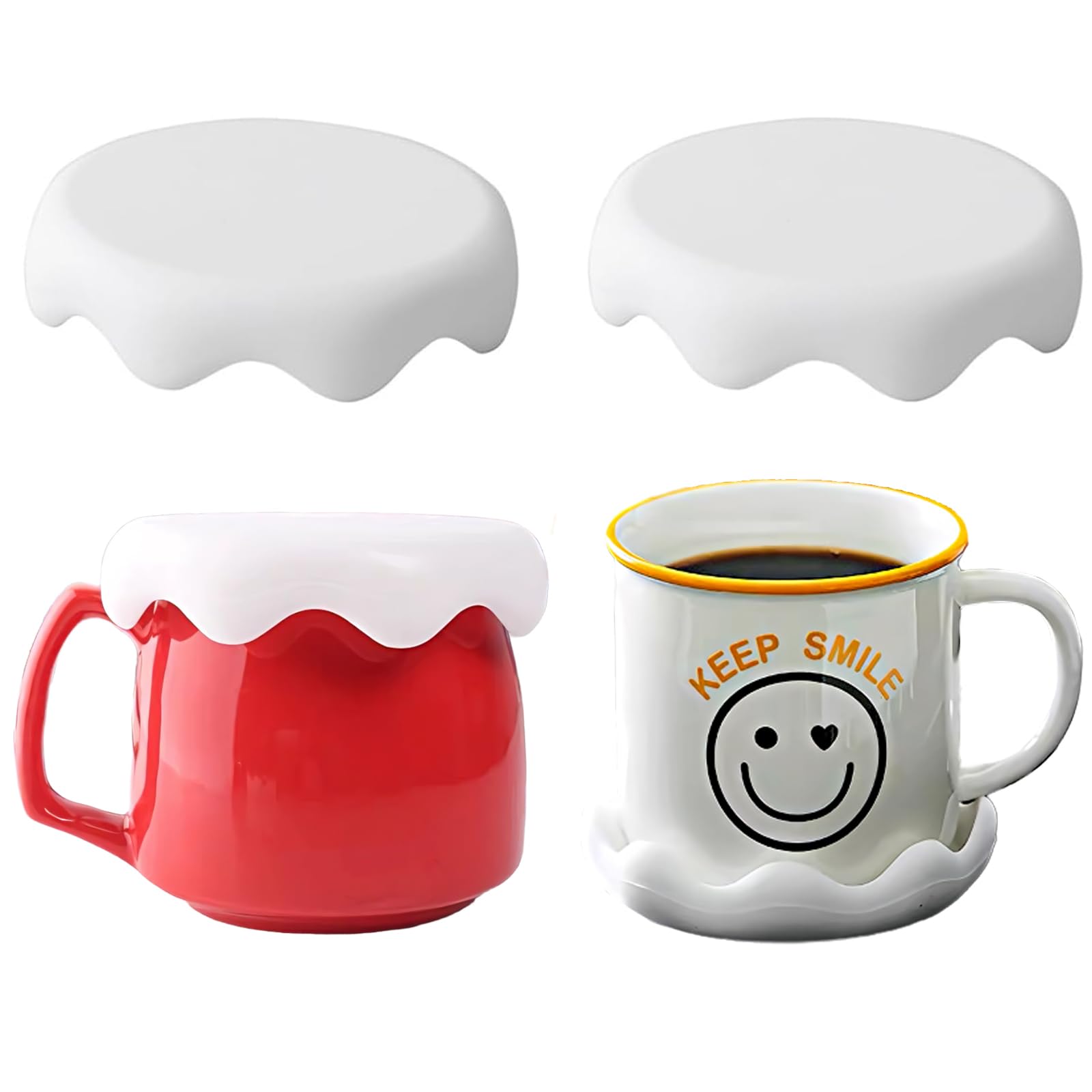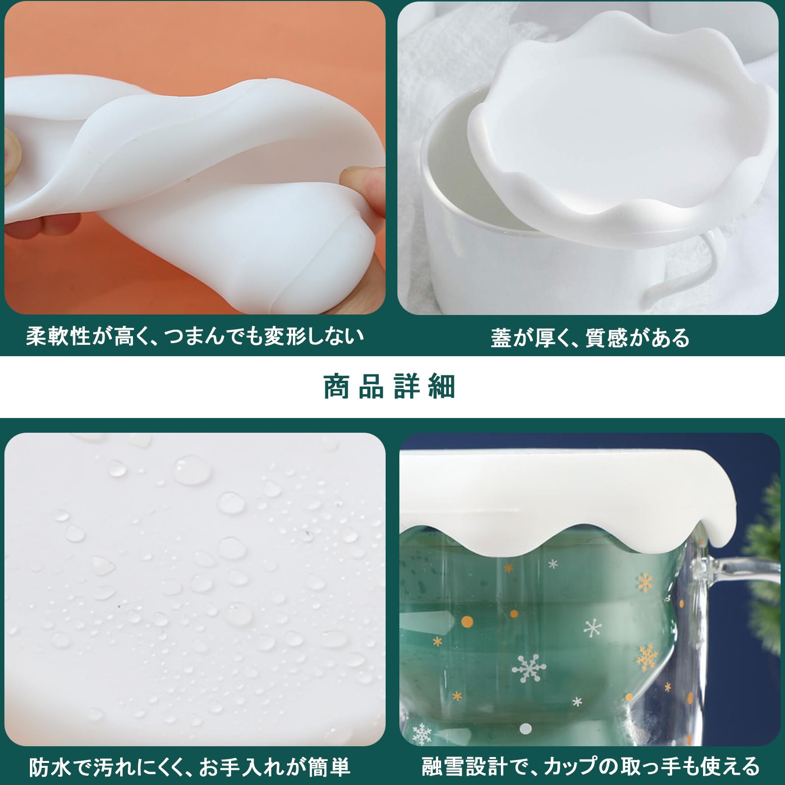 マグカップカバー 2個 コップ蓋 マグカップ 蓋 マグカップ保温カバー コップ密閉蓋 かわいい雪の形 漏れ防止 耐冷 耐熱 防塵 再利用可能 ティーカップ コーヒーカップ ホワイト (8cm)