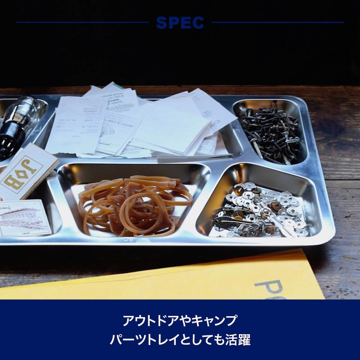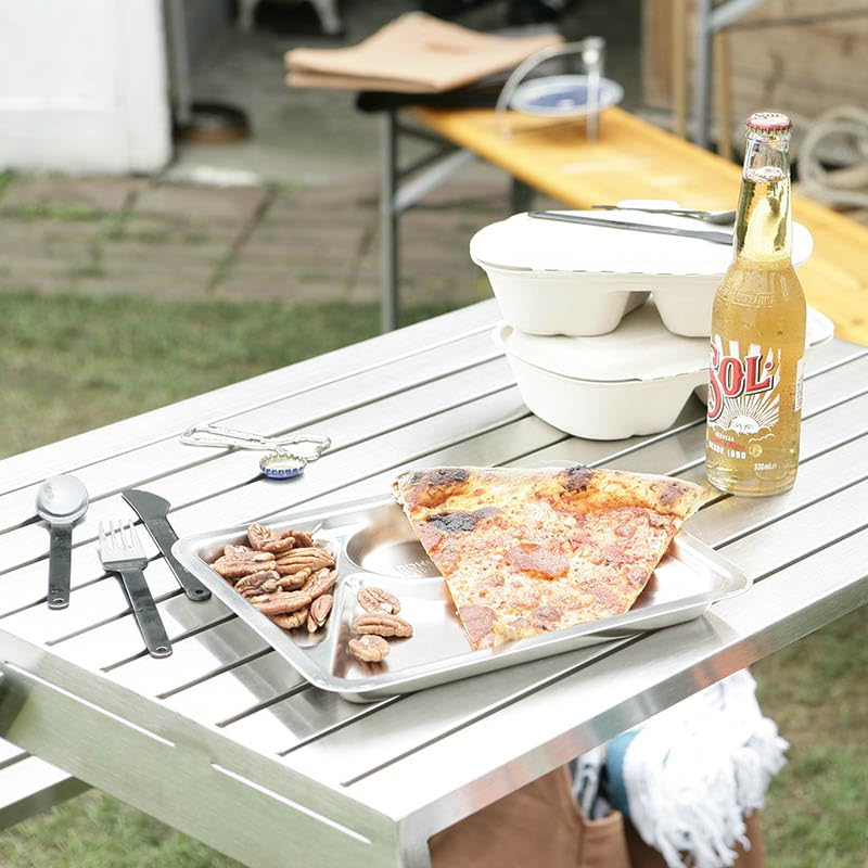 軍の使用しているフードトレイ。そのカッコよさは、機能的かつ効率的で、シンプルなところ。その、飾り気はないが内容の濃いカッコよさを、日常で使いやすいプレートにしました。アウトドアやキャンプでは間違いなくムードに。パーツトレイとしても重宝します。コンパクトな4区分のタイプA。