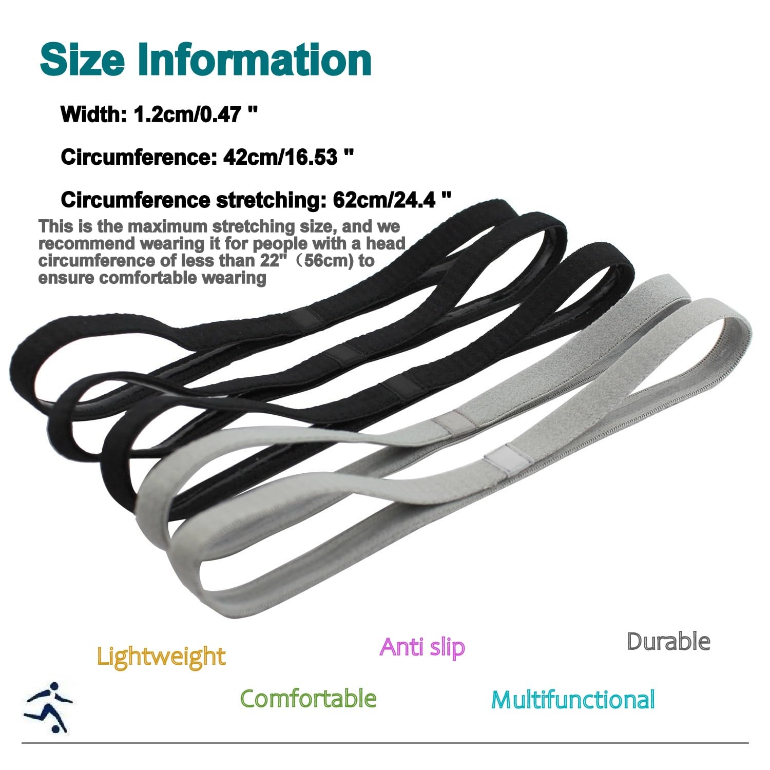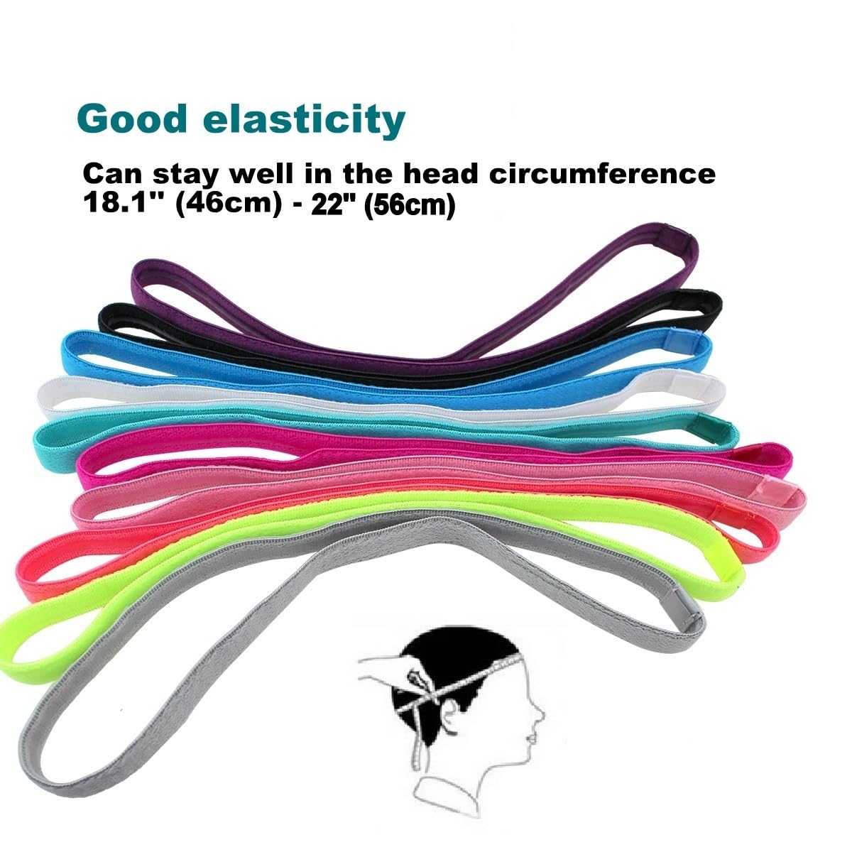 サイズ: ヘッドバンド幅0.4インチ、円周16.5インチ、27インチまで伸ばすことが可能。 シングルバンド、10色展開。