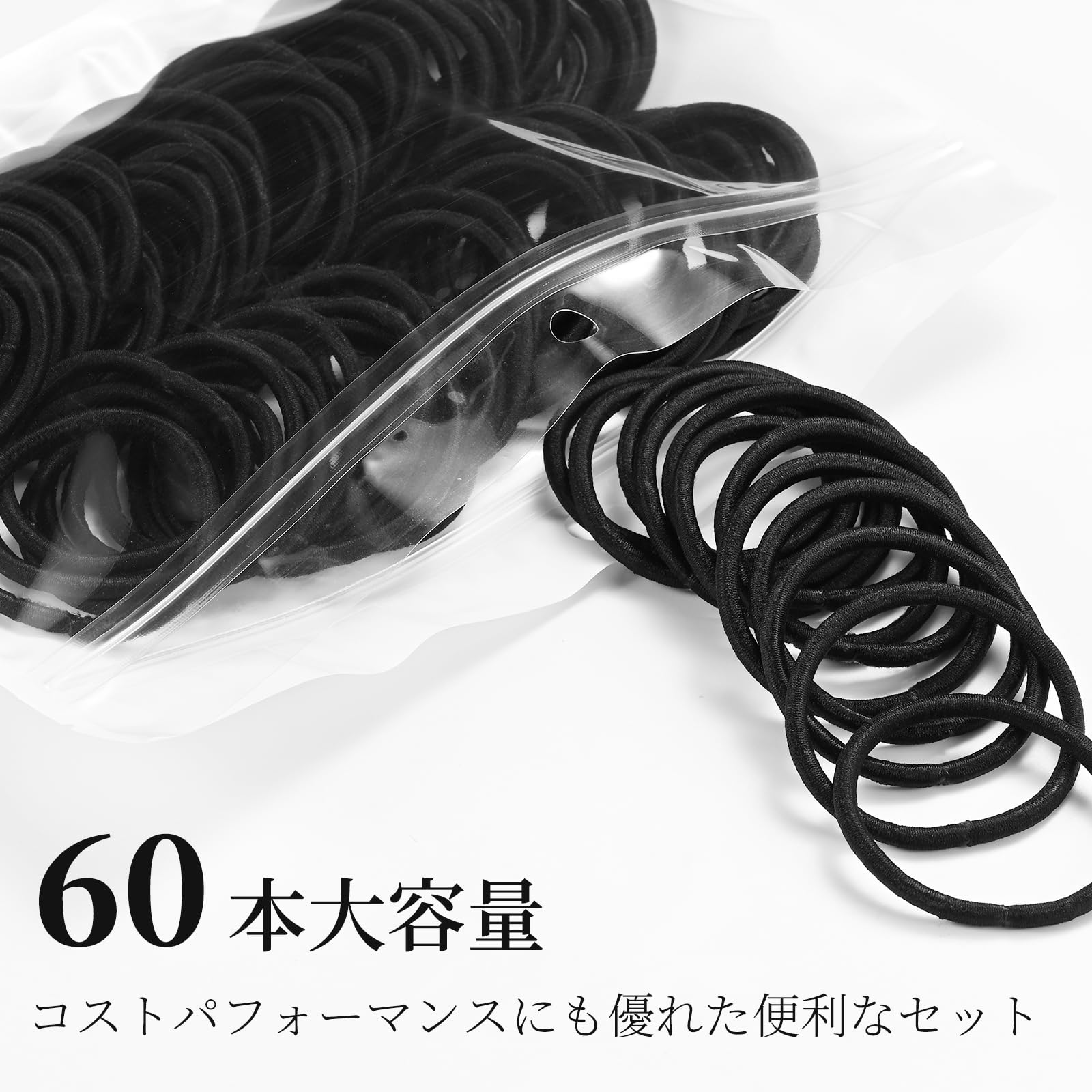 ヘアゴム 4mm 大容量 髪ゴム 黒 60本/100本/60本&収納ケース付き3タイプ選べる 丈夫 伸縮性良い 使いやすい 髪の毛ゴム レディース メンズ (ブラック(60本))