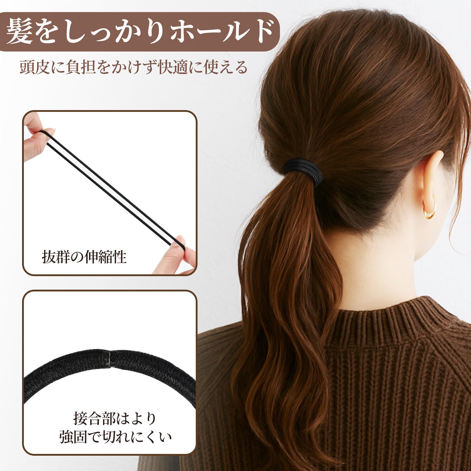 【選べる3タイプ・たっぷり使える大容量】:毎日使えるブラック髪留めゴムを、用途に合わせて選べる3タイプ(60本/100本/60本+収納ケース付き)でご用意。買い足しの手間が減り、ストックにも便利です。