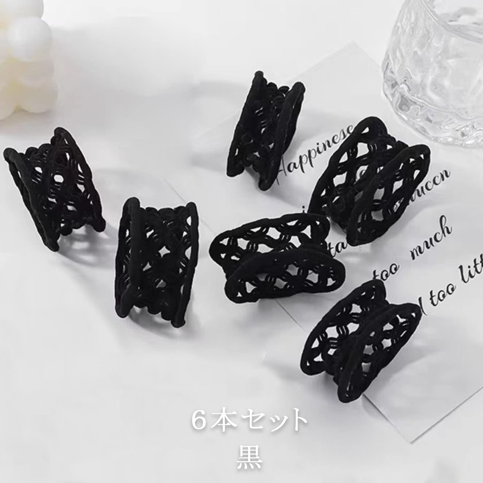 ヘアゴム 髪ゴム 黒 跡がつかないヘアゴム ブラウン 6本セット 韓国風 ネット リングゴム ポニーテールのヘアバンド 高弾性 髪束ね 結び目無し エレガント 簡約 おしゃれ ブラック