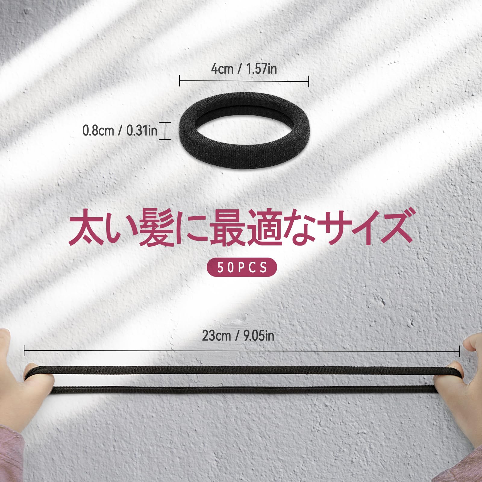 【数量】各パッケージには50本の伸縮性のヘアゴム 黒含まれており、長期間使用するのに十分です。