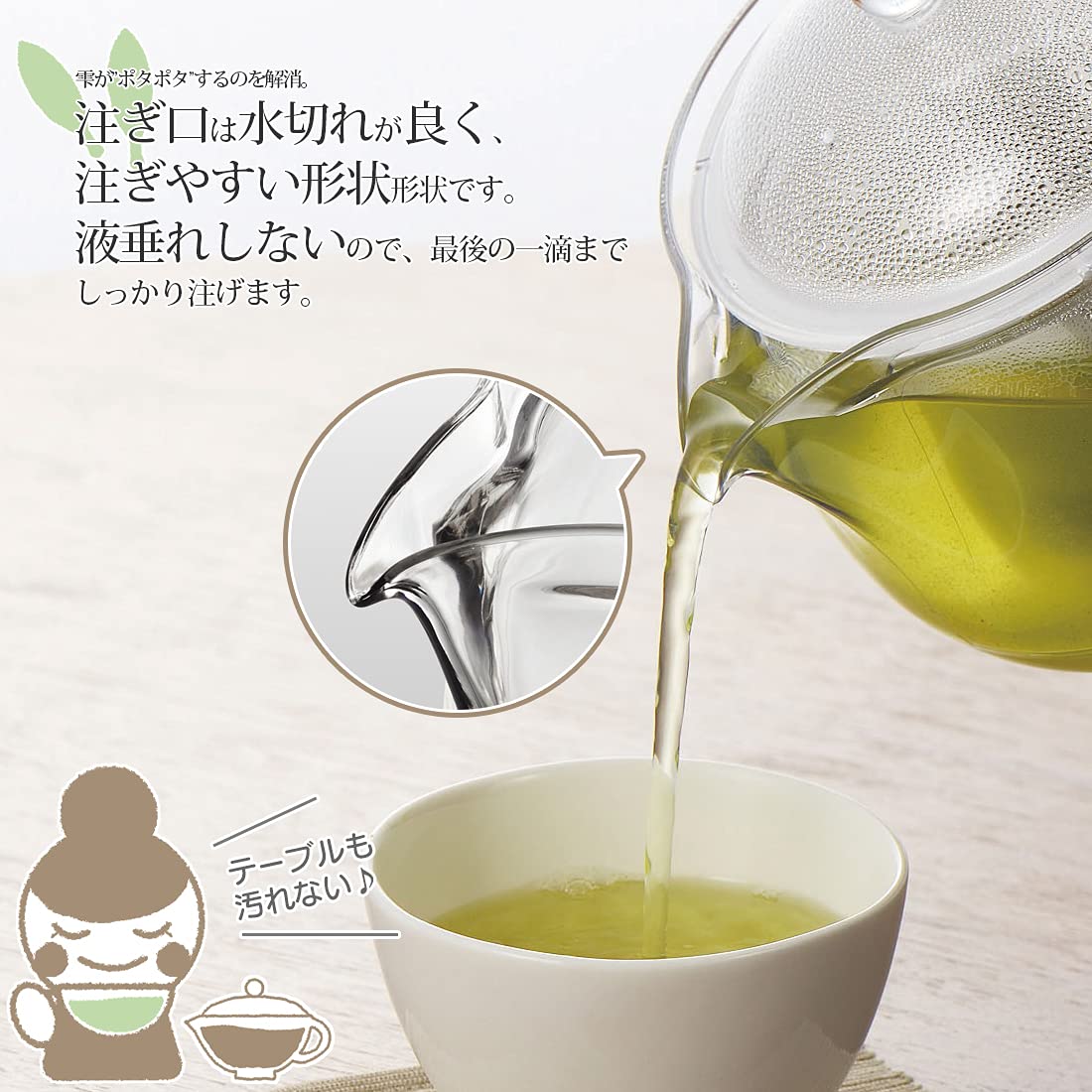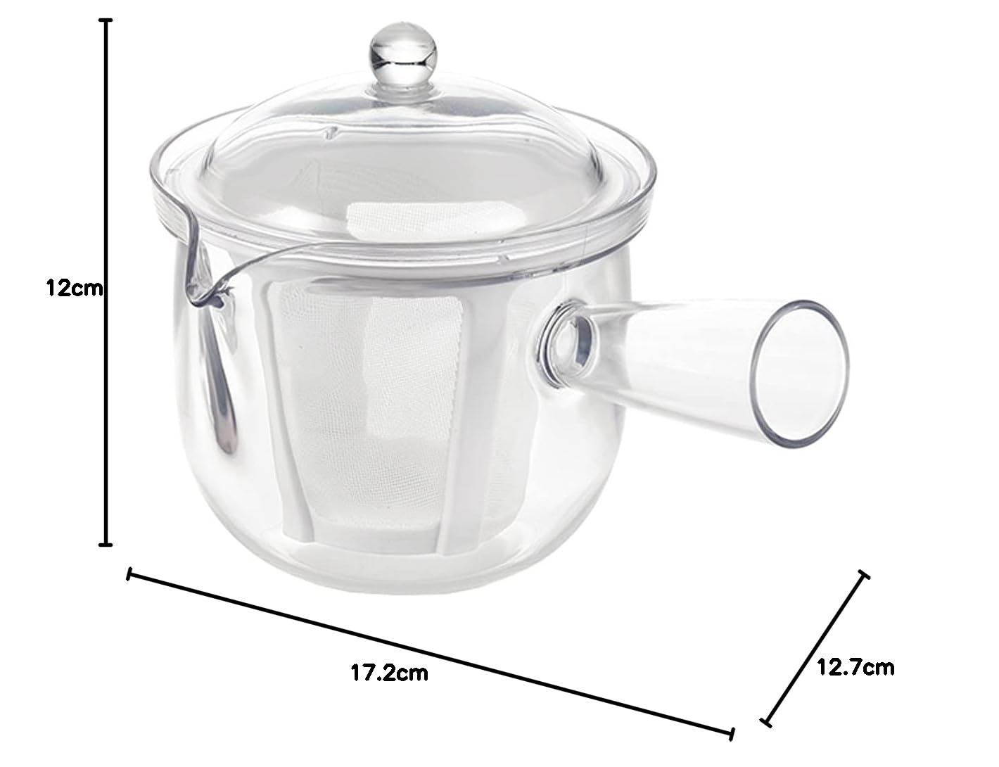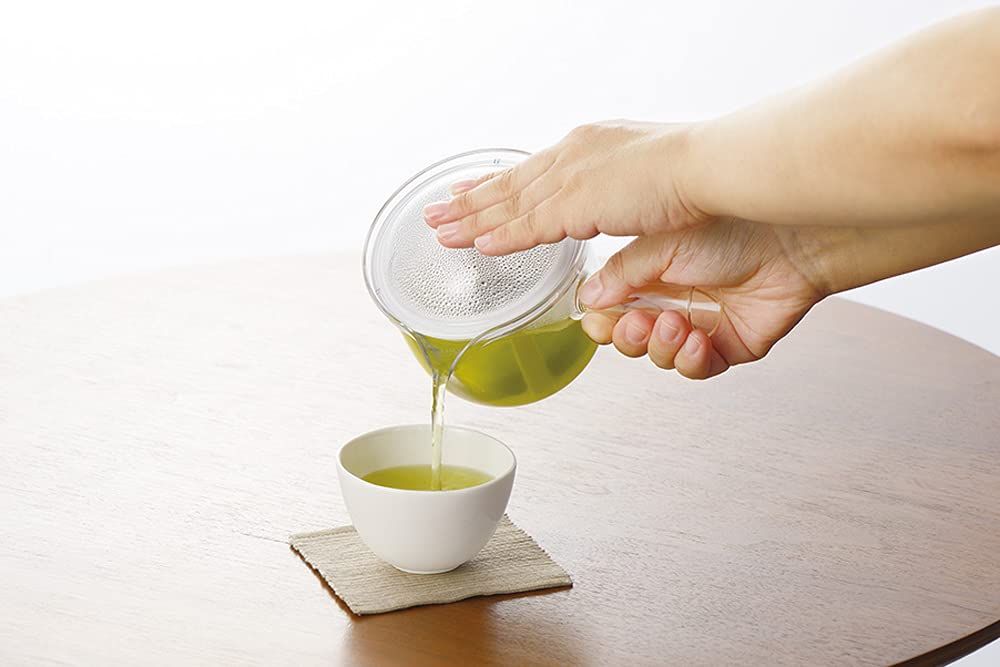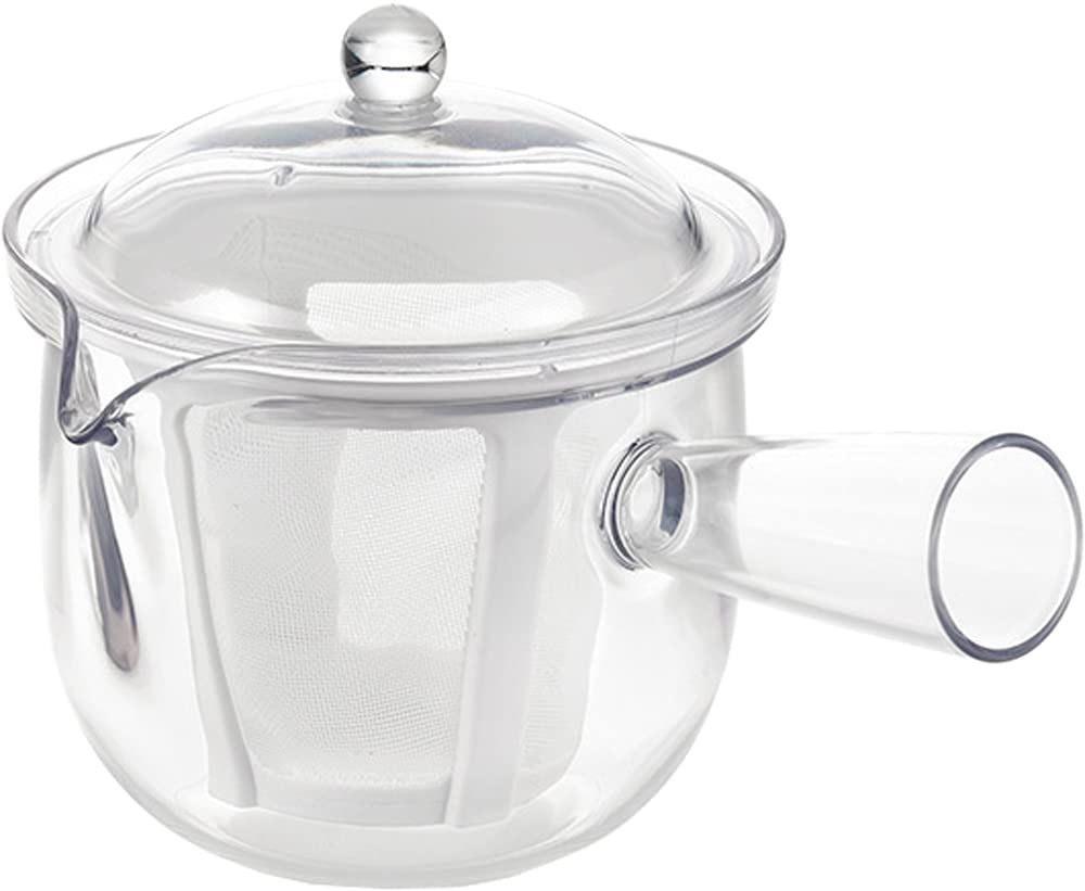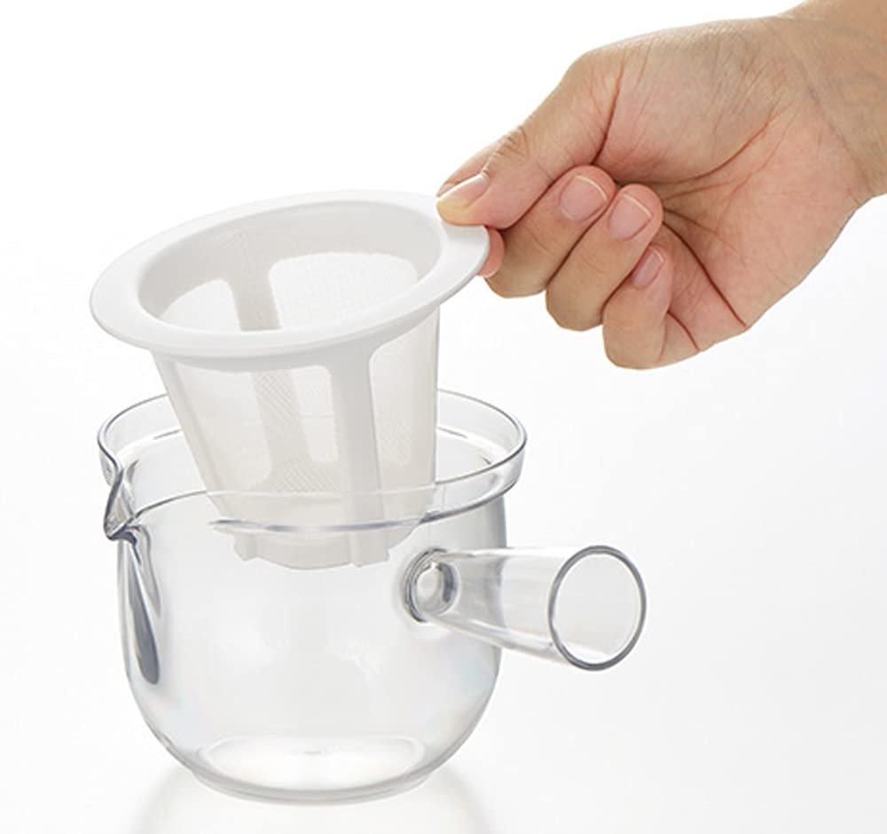 クリアティーポット L ポリエステルメッシュ 急須タイプ サイズ(約):17.2×12.7×12cm (170g) 素材・材質:本体・蓋/飽和ポリエステル樹脂、メッシュ/ポリエステル・ポリプロピレン 生産国:日本 容量:480ml 電子レンジ対応、食器洗浄機対応 軽くて割れない、ガラスのように透明なプラスティック製ティーポット。丈夫なポリエステルメッシュのストレーナー付き