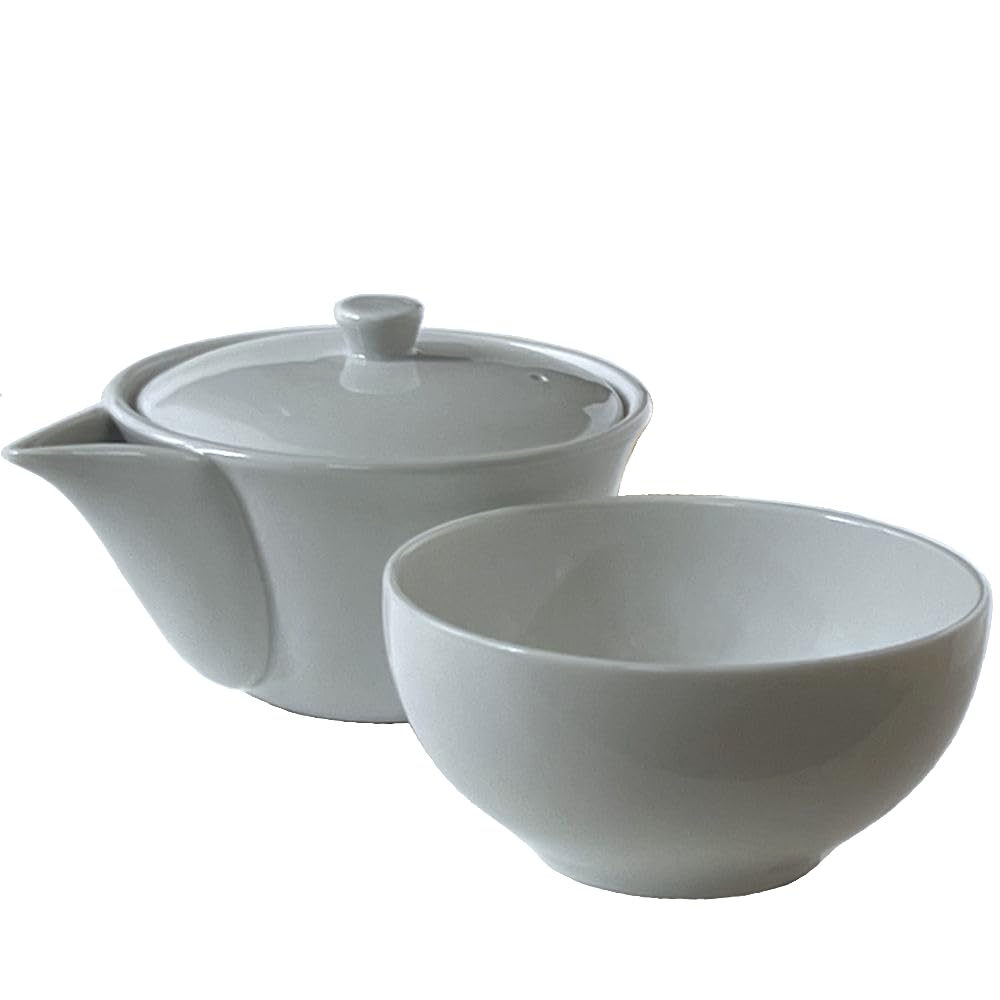 風景ドットコム 研茶用急須 150ml 白 ステンレス茶こし 研茶碗付き日本製