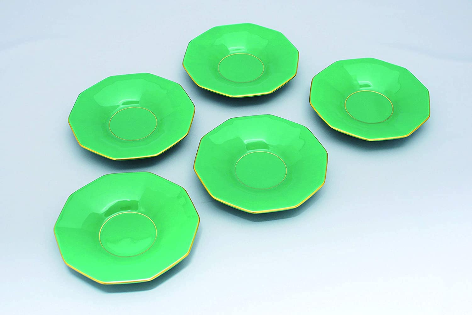 香蘭社 茶托セット 5枚 グリーン 十角形 有田焼 日本製 爽やかで少し濃いめのグリーンが上品なデザイン おもてなしの時間に華を添えてくれる十角形 エンヴェールヘルック