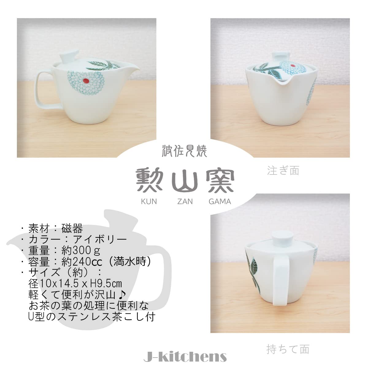 材質:磁器(食器洗い機使用可能、食器乾燥機使用可能)、電子レンジ:カップ/使用可能 急須/本体のみ電子レンジ対応 , 茶こし不可