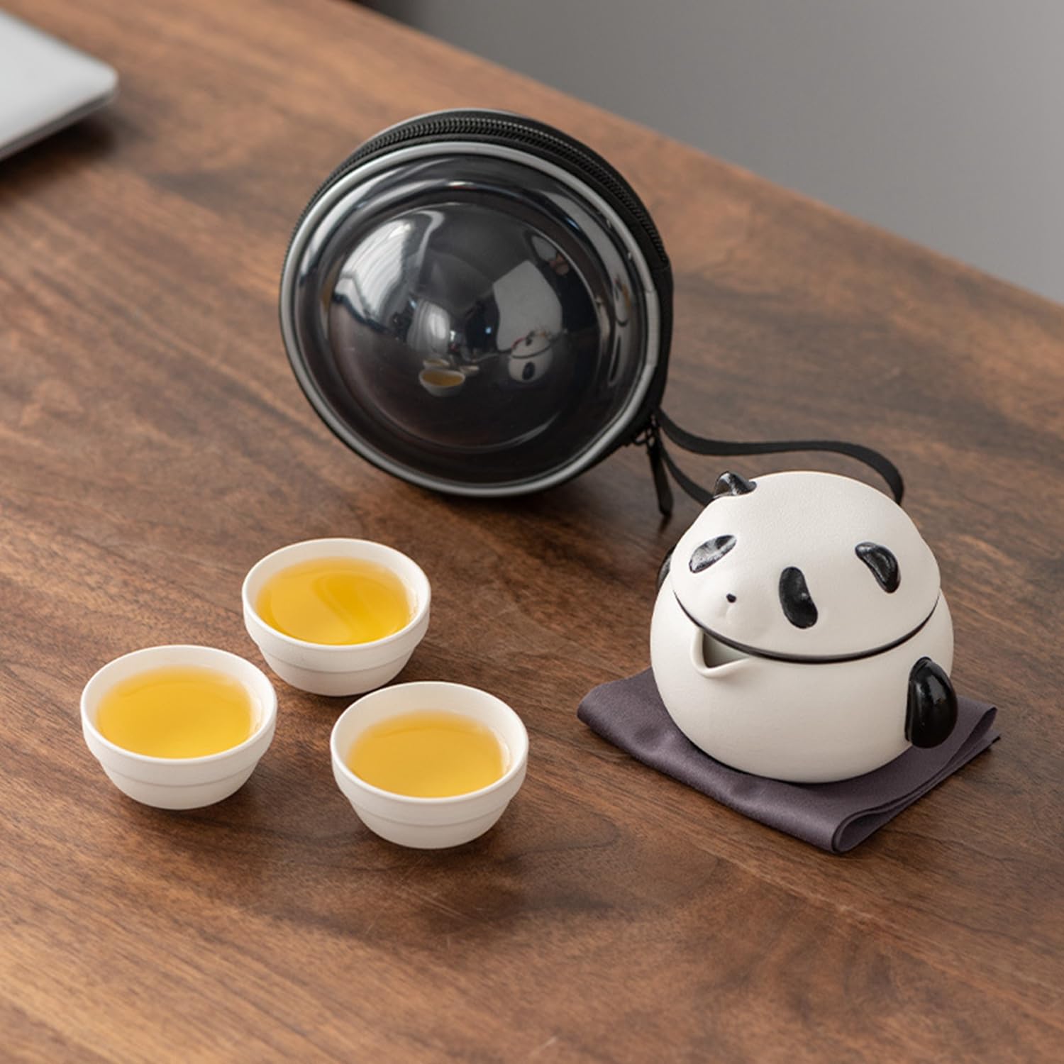 茶器セット かわいいパンダ 3人用 急須セット 中国茶器 コップ 収納バッグ付き陶器湯呑みセット 旅行ティーセット 携帯茶道具