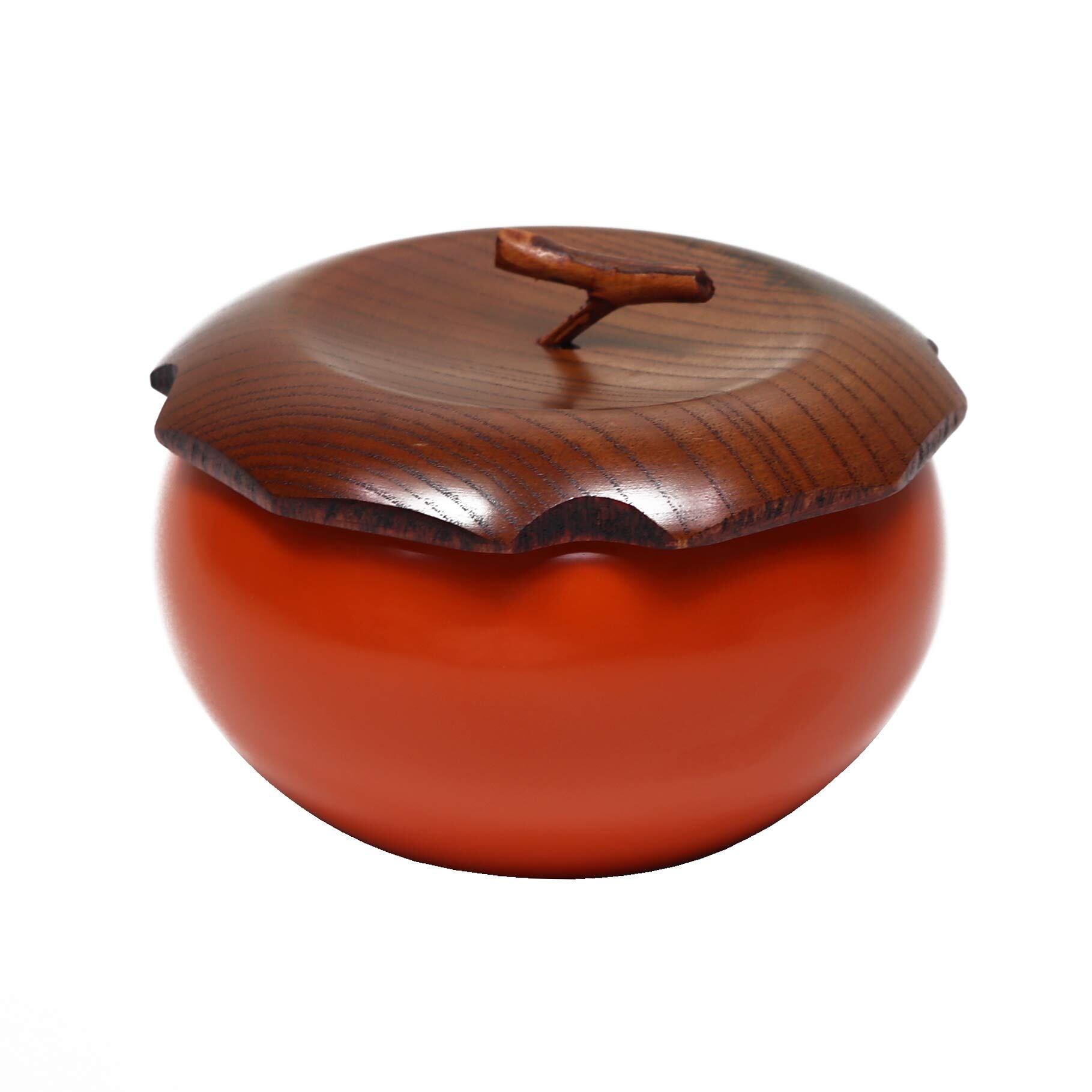 大阪 長生堂 木製 菓子皿 山中塗 菓子器 直径12cm オレンジ色 木目 漆塗り オリジナル 柿型