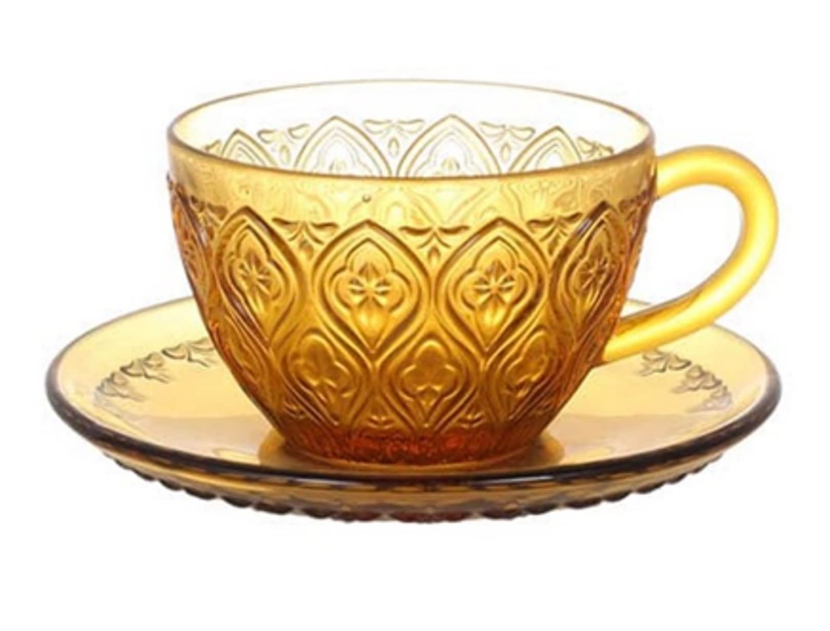 ダルトン(Dulton) 食器 グラスカップ&ソーサー フィオーレ アンバー 160ml GLASS CUP & SAUCER ''FIORE'' AMBER A615-818BR
