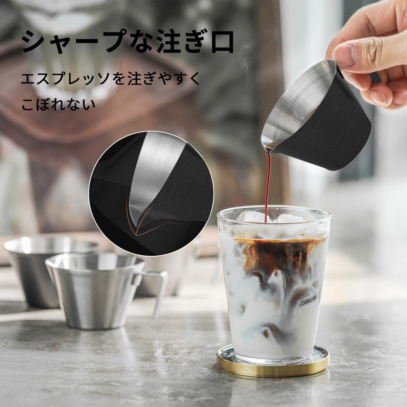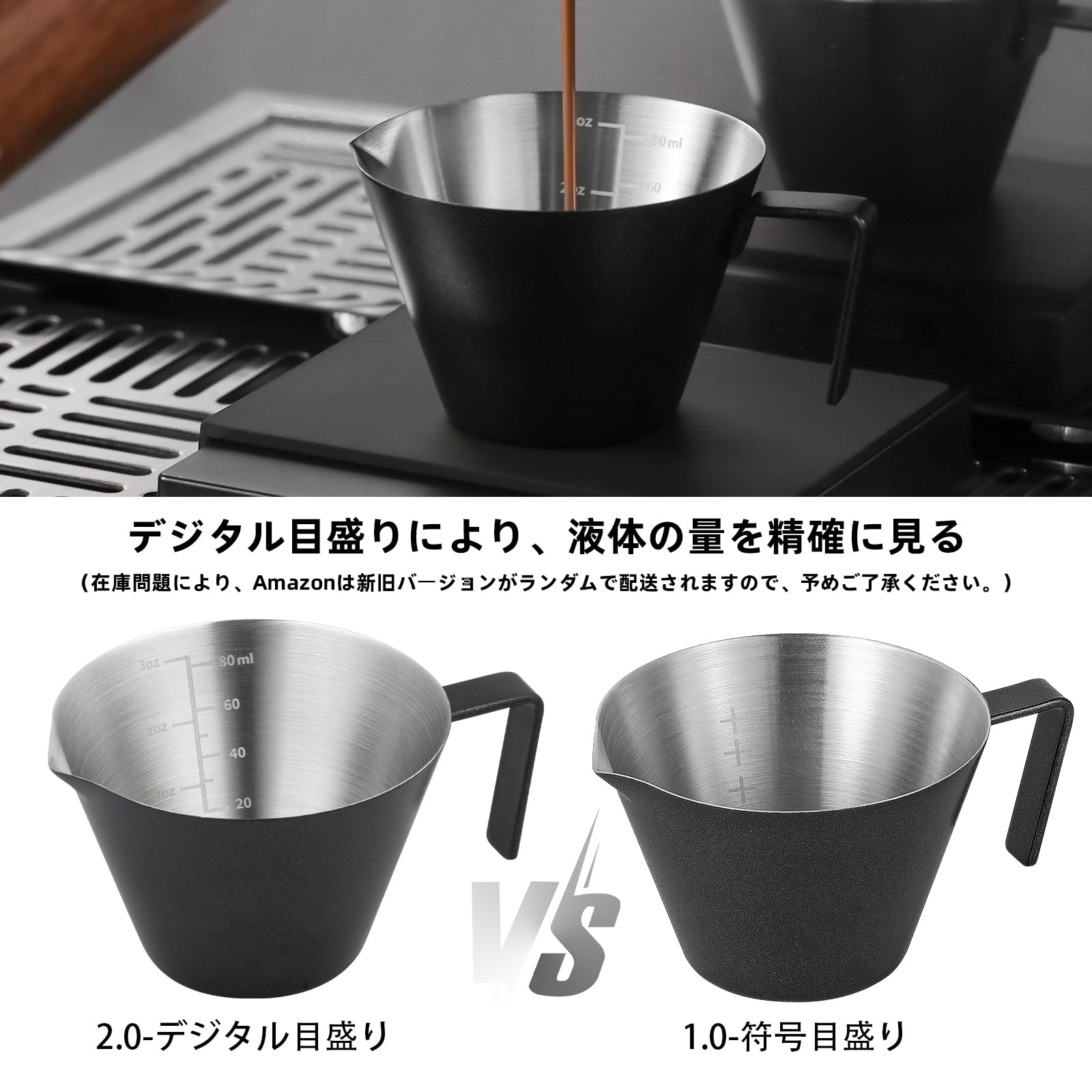 プレミアム素材。304ステンレス製で錆びない、ガラスの計量カップのような壊れやすさを心配する必要がありません。暖かいヒント:ブラックエスプレッソメジャーカップの表面は、高温塗装ベーキングプロセスを採用しています。そのコーティングを保護するために、それは食器洗い機を使用しない方が良いですし、それはまた、手で非常に簡単にきれいにすることができます。