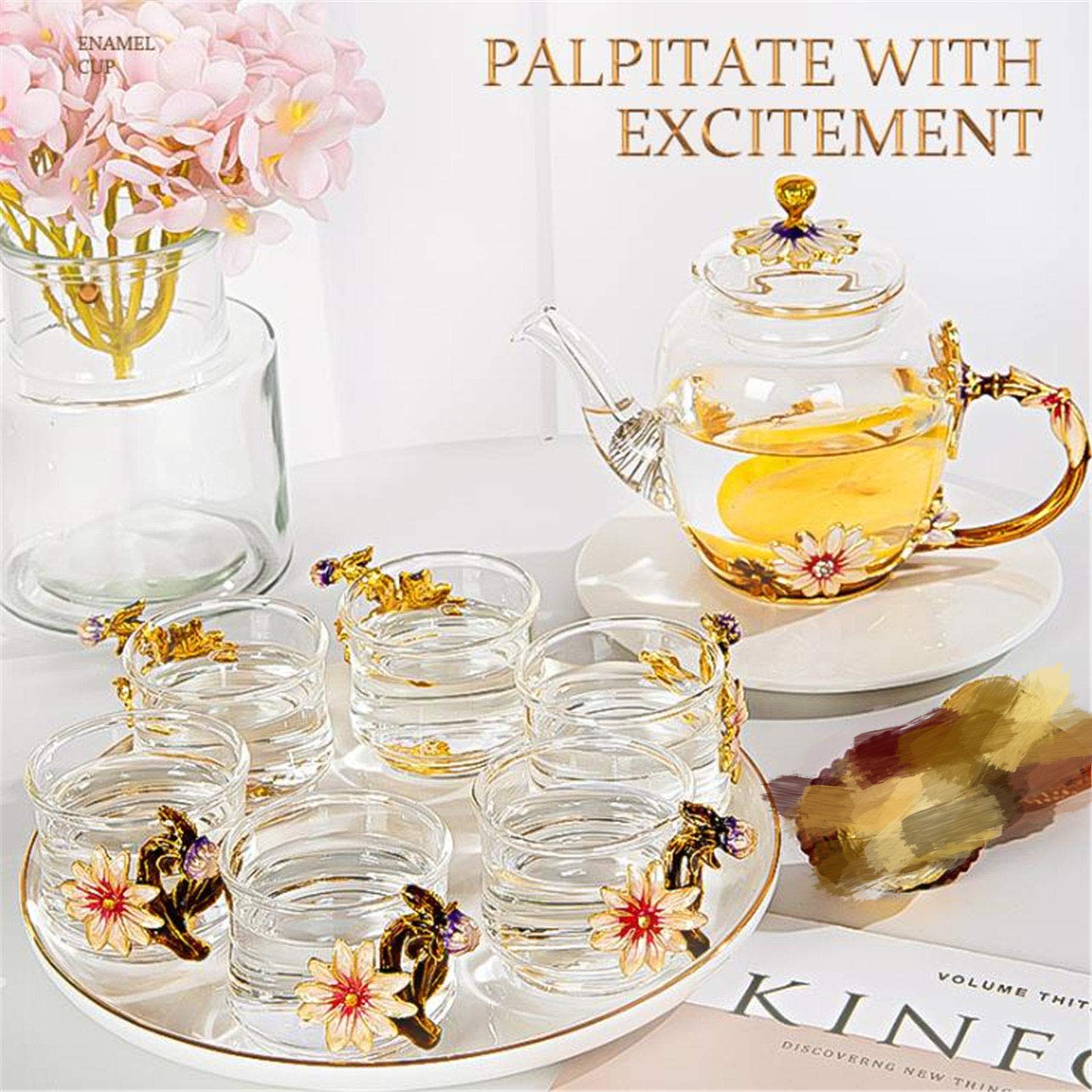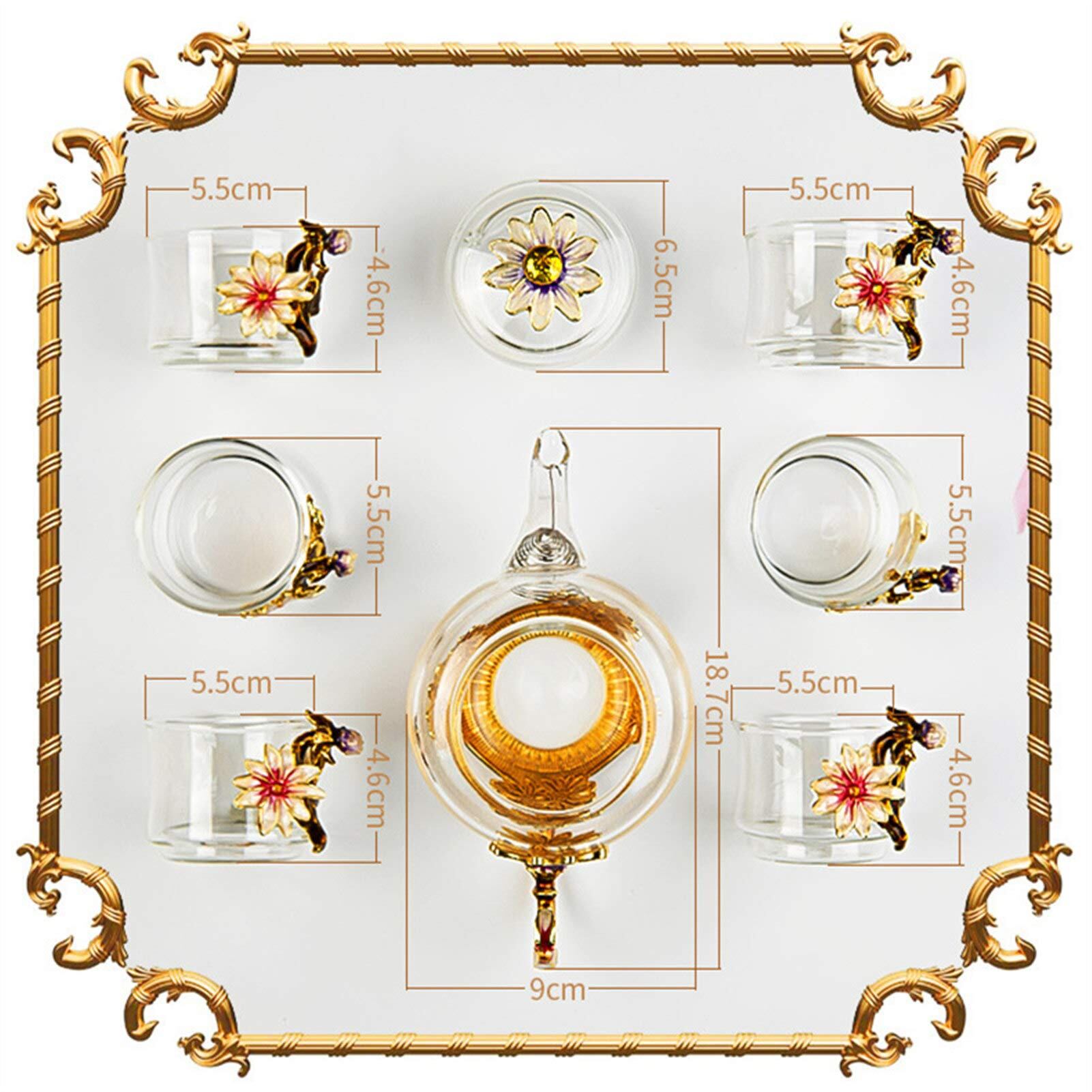 【特価処分】ティーポット 耐熱ガラス 菊 ティーカップ 7点セット 母の日 おしゃれ 急須 湯呑み 茶ポット 透明 保温 インテリア ハーブティーポット 工芸茶 コーヒーカップ 厚手 真空断熱 紅茶 花茶 緑茶 ティーパック プレゼント