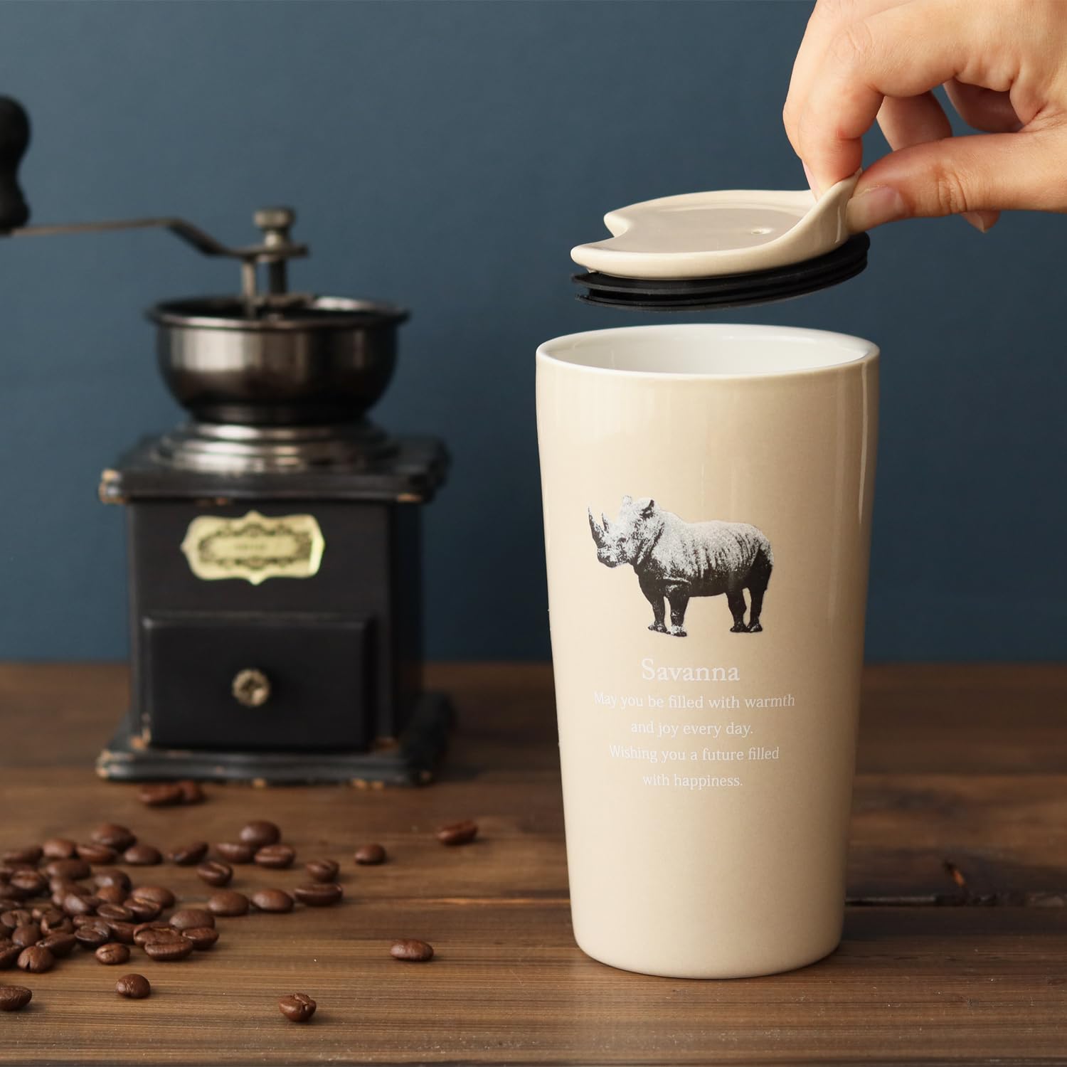 Dolce duo タンブラー 陶器 ふた付 カップ コップ サイ 400ml 二重構造 保温 保冷 (ベージュ) CT-1527