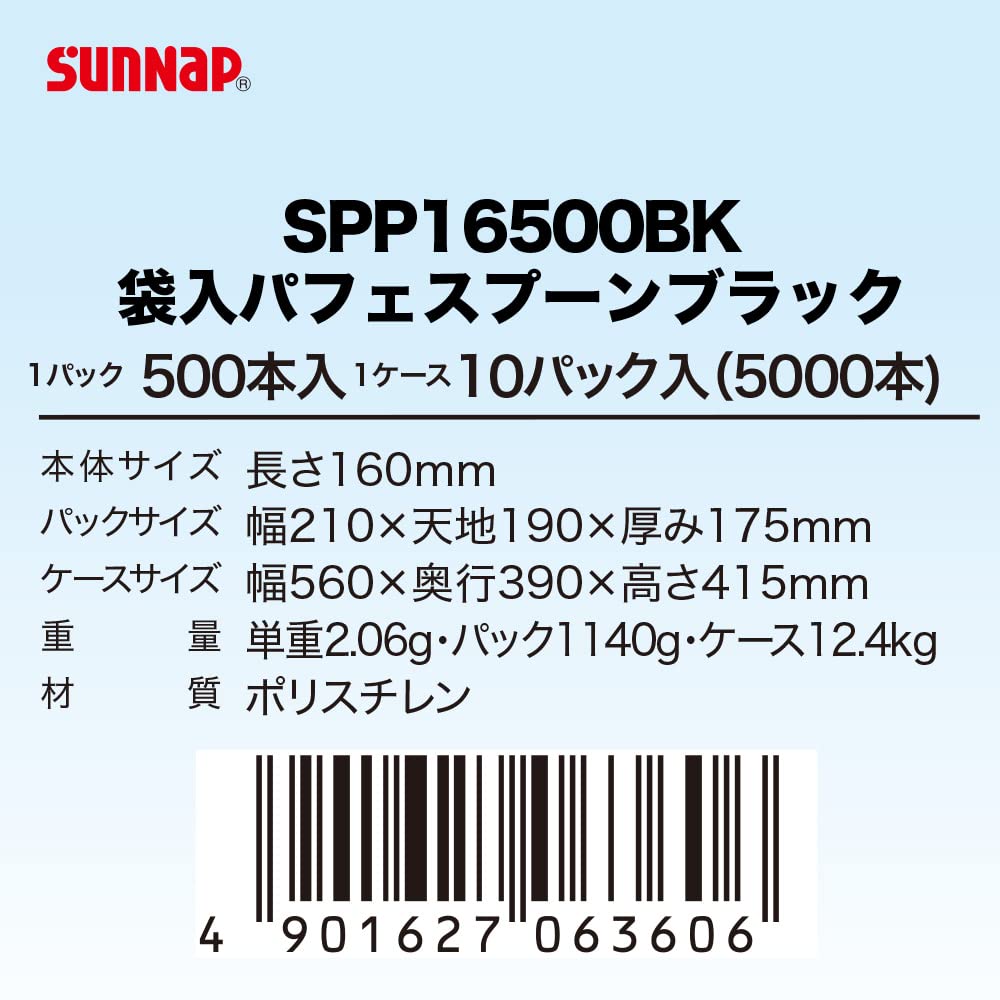 【努力特価】サンナップ 【 個包装パフェスプーン ブラック・16cm】フラッペやかき氷、パフェに好適なロングマドラースプーン 黒色カトラリー 500本 SPP16500BK