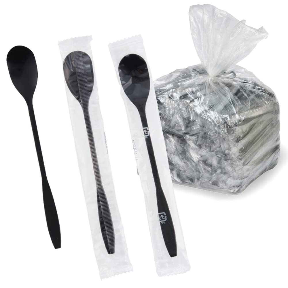 サンナップ 【 個包装パフェスプーン ブラック・16cm】フラッペやかき氷、パフェに好適なロングマドラースプーン 黒色カトラリー 500本 SPP16500BK
