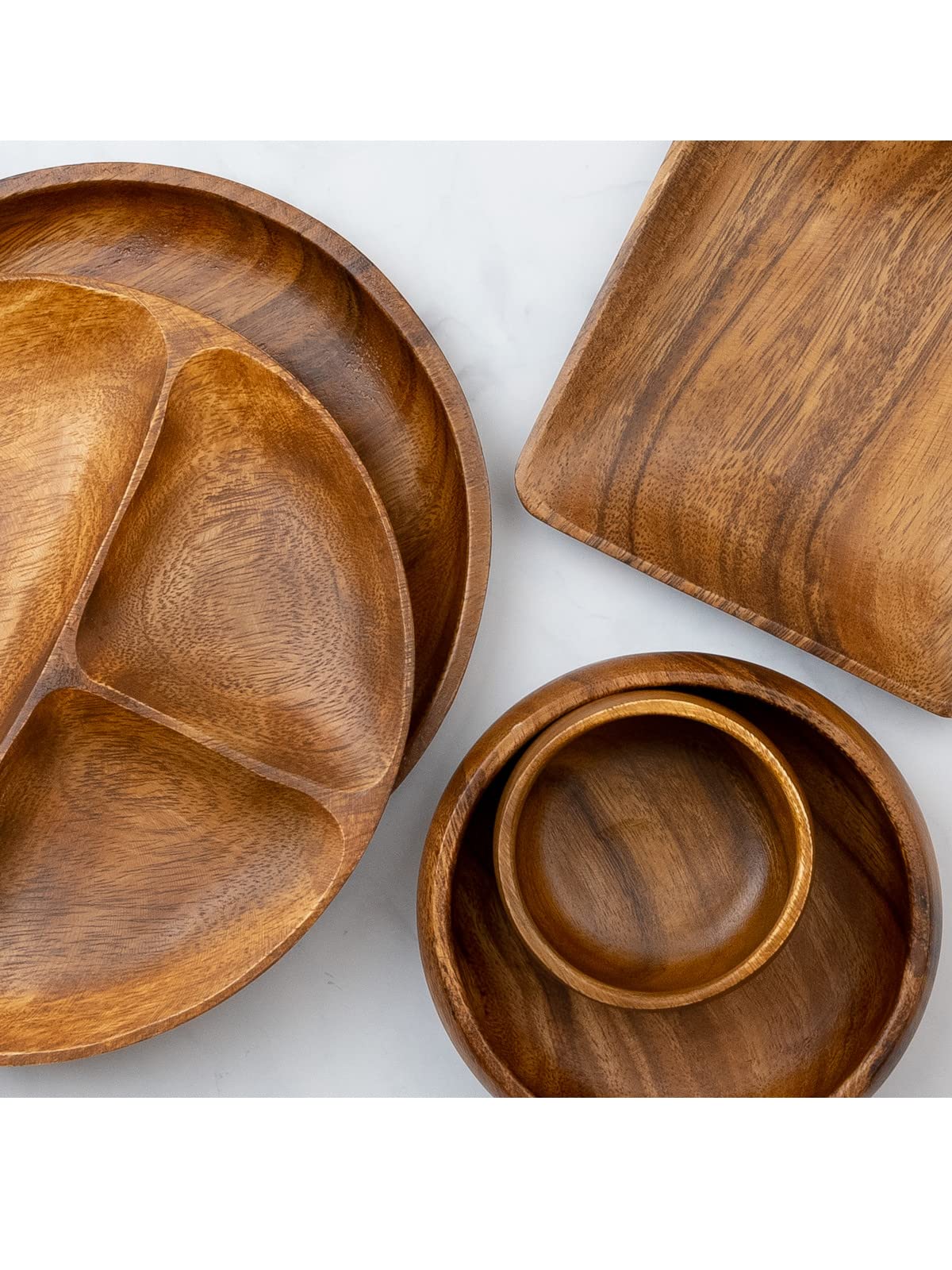 アカシアの天然目を使用した温かみのある食器