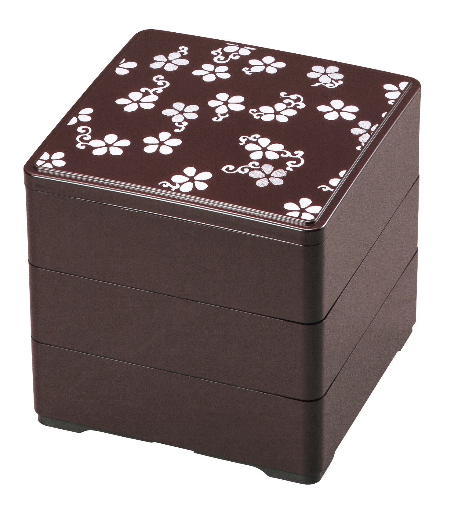 若泉漆器 3段重箱 5寸重 新溜 桜吹 (内黒) H-155-69-A サイズ:15×15×14.2㎝ 本体重量:約355g 素材:ABS樹脂 生産国:日本 樹脂製なので、軽くて使いやすい 行楽、遠足、運動会にも使えます。