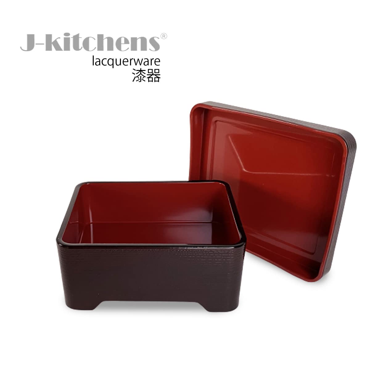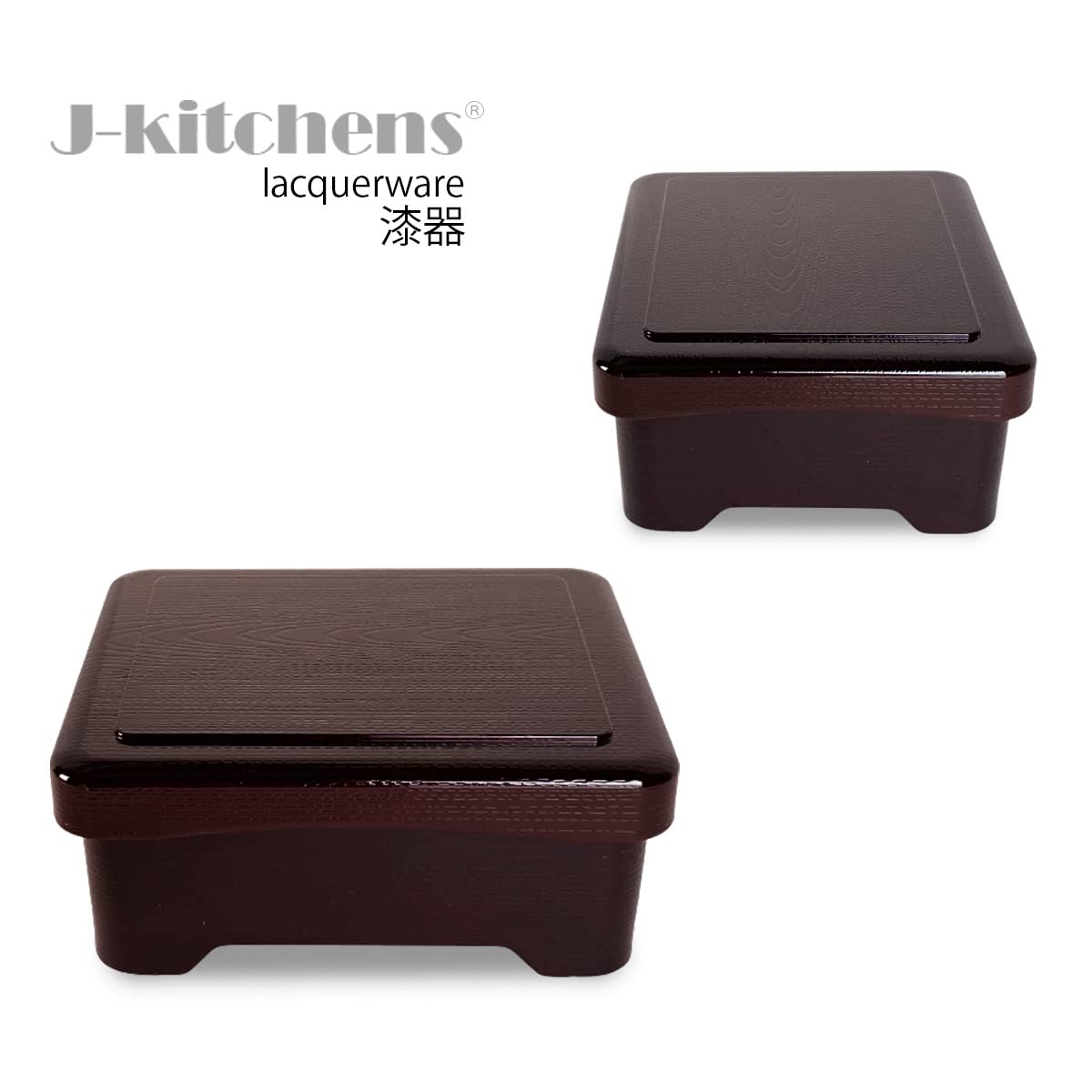 【在庫のみ】J-kitchens うな重 重箱 食洗機対応 耐熱 木目丼重 溜 内朱塗 鰻 (うなぎ) 重箱 16.8cm ×14.3cm ×7.2cm 日本製 (42)